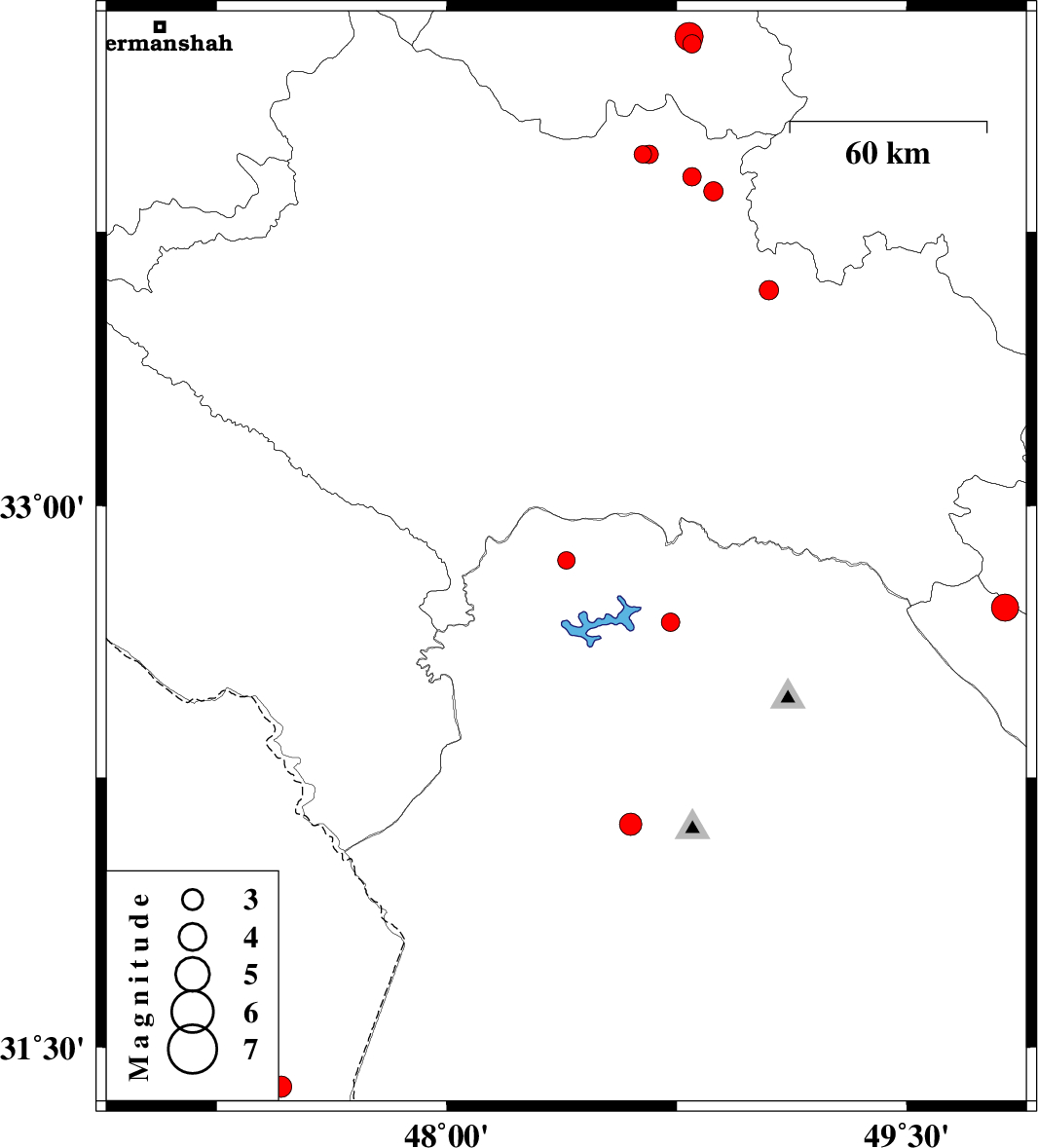 2006/08/07 | 00:03:14.4 | 03:33:14.4 | 32.68 | 48.73 | 14 | ML:2.7 | 43 km North-East of Andimeshk, Khoozestan Province | ||