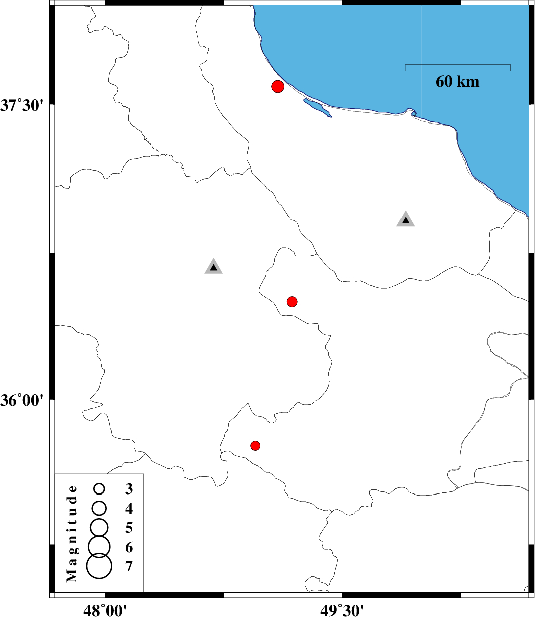 2006/09/14 | 19:54:56.2 | 23:24:56.2 | 37.59 | 49.09 | 17 | ML:3.5 | 7 km Rezvanshahr, Gilan Province |