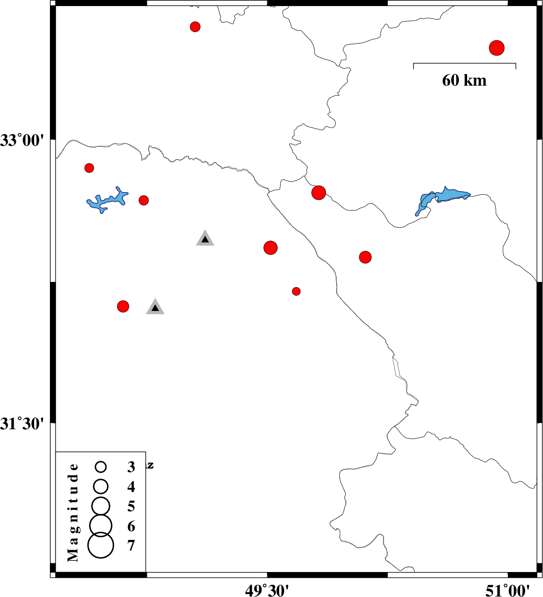 | 2006/08/14 | 10:45:13.3 | 14:15:13.3 | 32.85 | 48.39 | 18 | ML:2.5 | 43 km North of Andimeshk, Khoozestan Province | ||