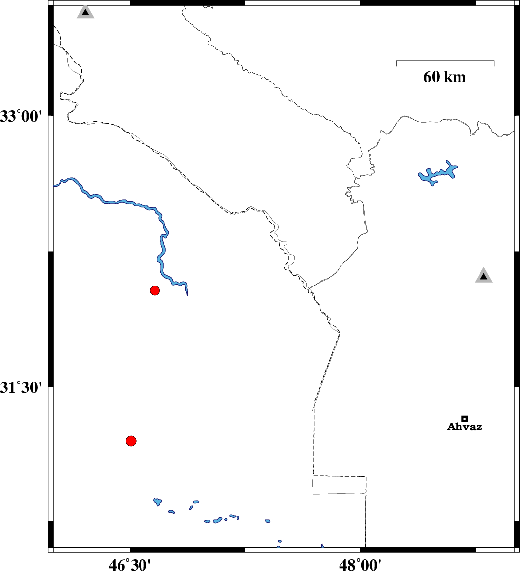 | 2006/09/14 | 23:28:46.1 | 02:58:46.1 | 32.69 | 47.61 | 18 | ML:2.7 | 29 km South-East of Abdanan, Ilam Province |