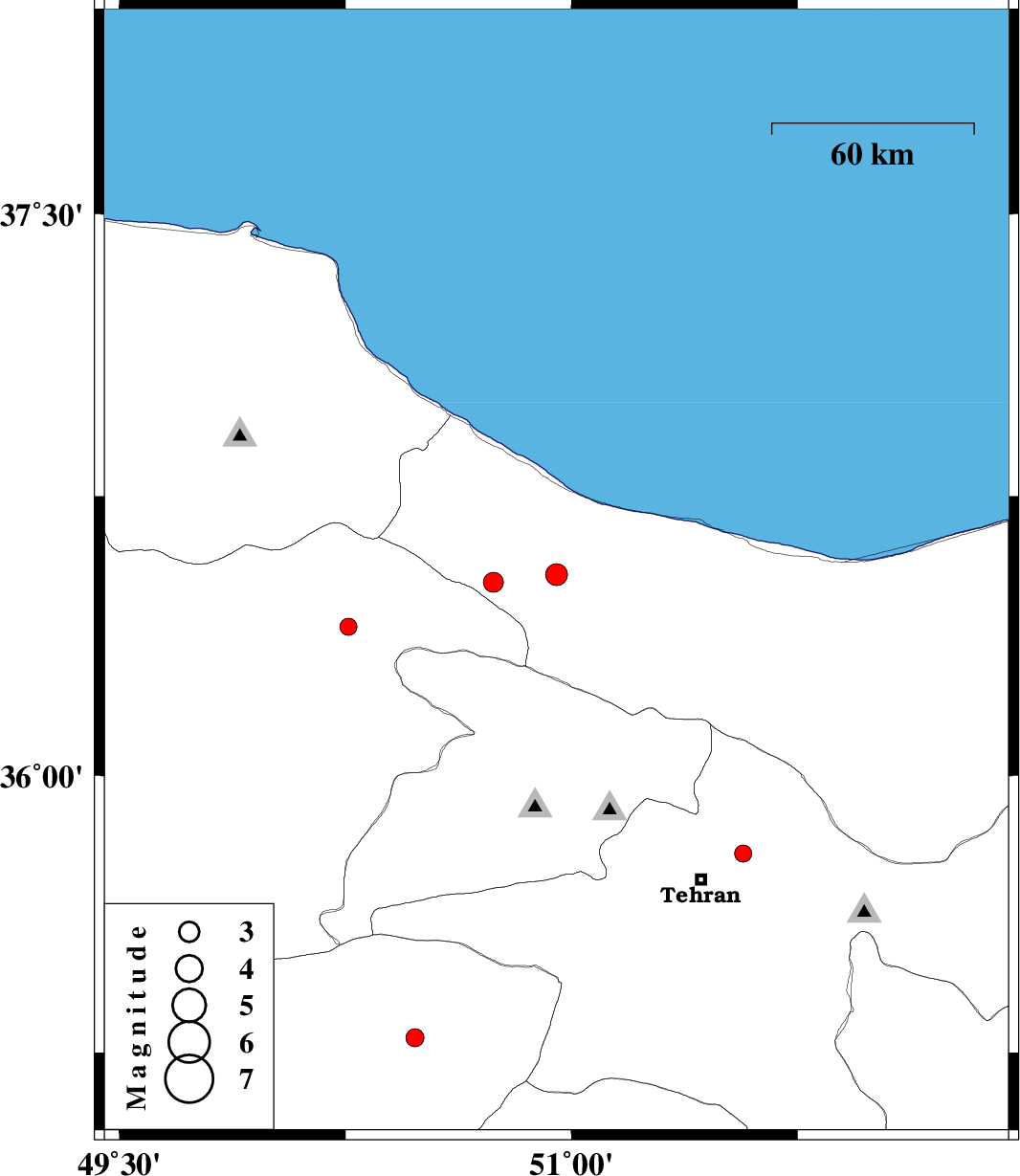 2006/08/15 | 00:33:53.7 | 04:03:53.7 | 35.79 | 51.57 | 15 | ML:2.6 | 11 km East of Tajrish, Tehran Province | ||