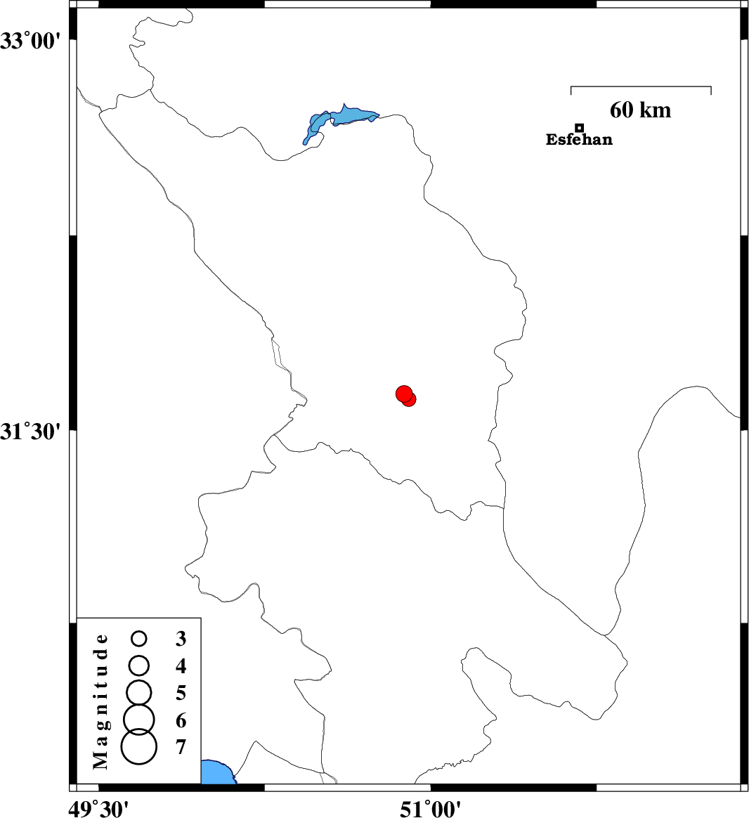 | 2006/10/26 | 22:26:38.4 | 01:56:38.4 | 31.62 | 50.9 | 18 | ML:3 | 15 km North of Lordegan, Chaharmahal Bakhtiari Province |