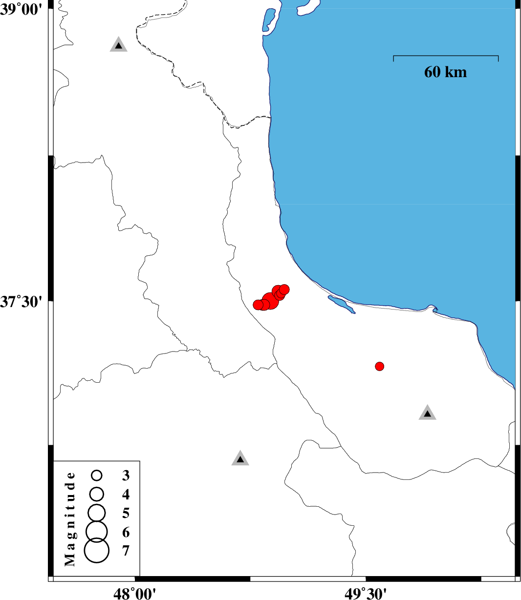 2006/11/05 20:10:16.5 23:40:16.5 37.5548.9314 ML:3.7 19 km West of Rezvanshahr, Gilan Province