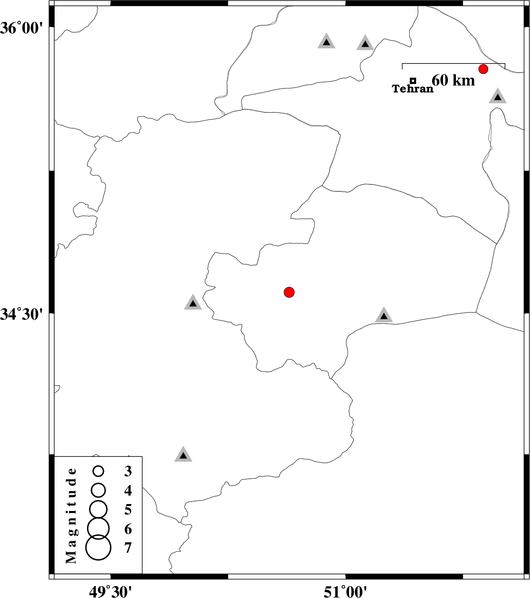 2006/10/30 | 13:55:25.3 | 17:25:25.3 | 35.78 | 51.88 | 18 | ML:2.7 | 18 km West of Damavand, Tehran Province |