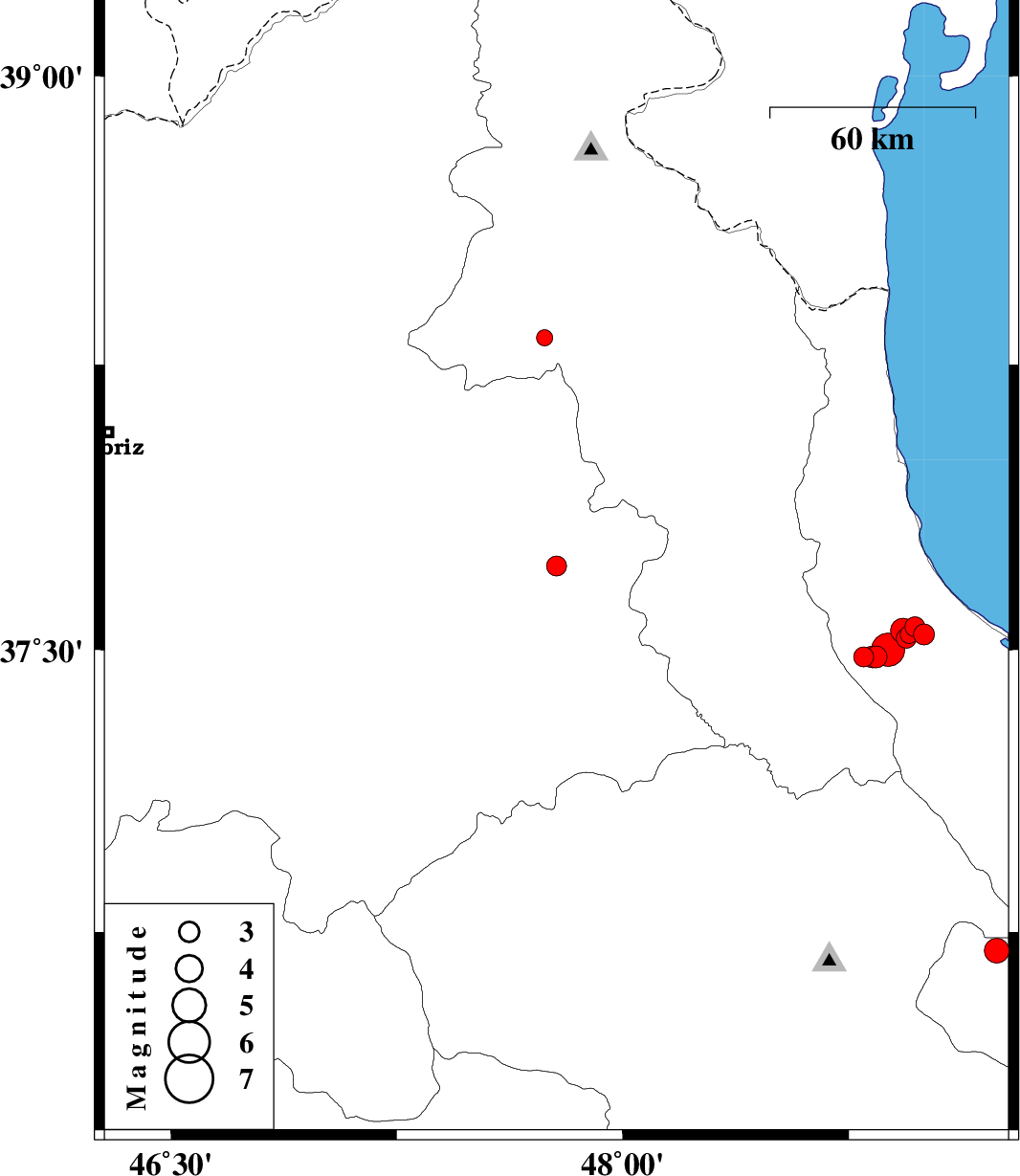 2006/11/06 | 12:12:13.4 | 15:42:13.4 | 37.56 | 48.97 | 14 | ML:2.9 | 16 km West of Rezvanshahr, Gilan Province | ||