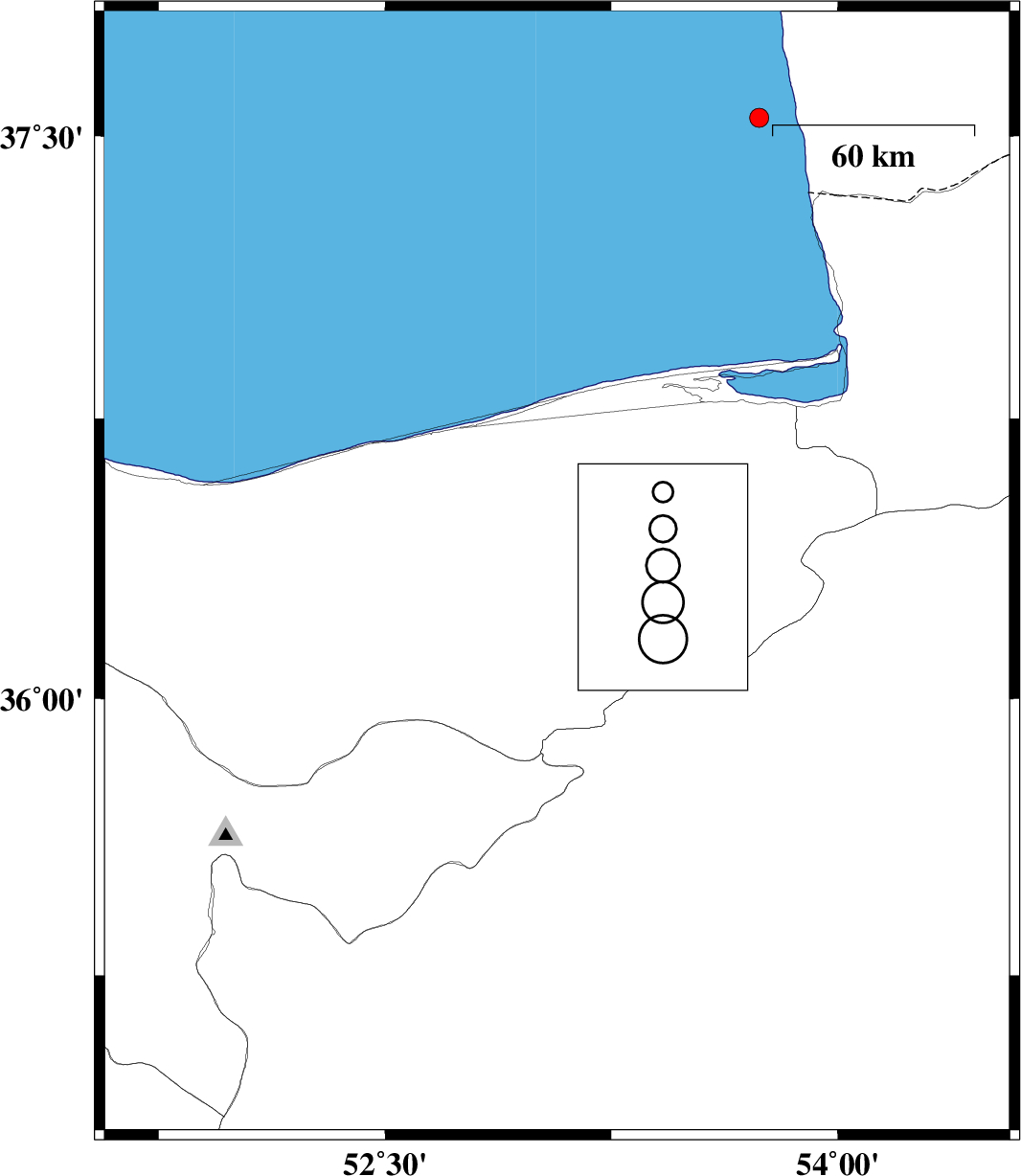 2006/11/08 | 18:23:31.1 | 21:53:31.1 | 36.38 | 52.17 | 6 | ML:2.8 | 19 km West of Amol, Mazandaran Province |