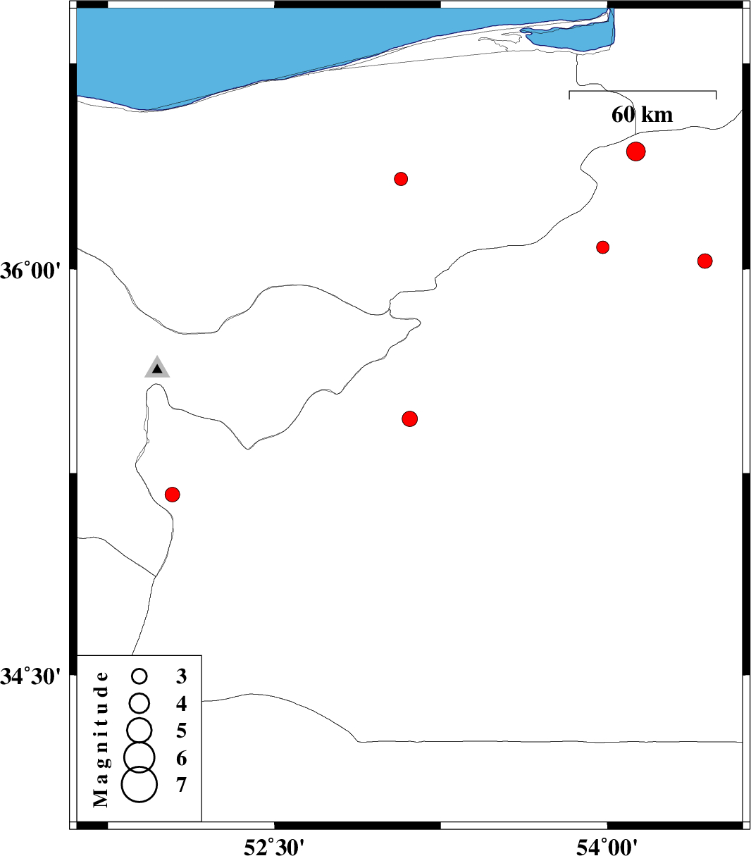 2006/11/12 | 17:22:01.8 | 20:52:01.8 | 36.03 | 54.44 | 14 | ML:3 | 17 km South of Damghan, Semnan Province |
