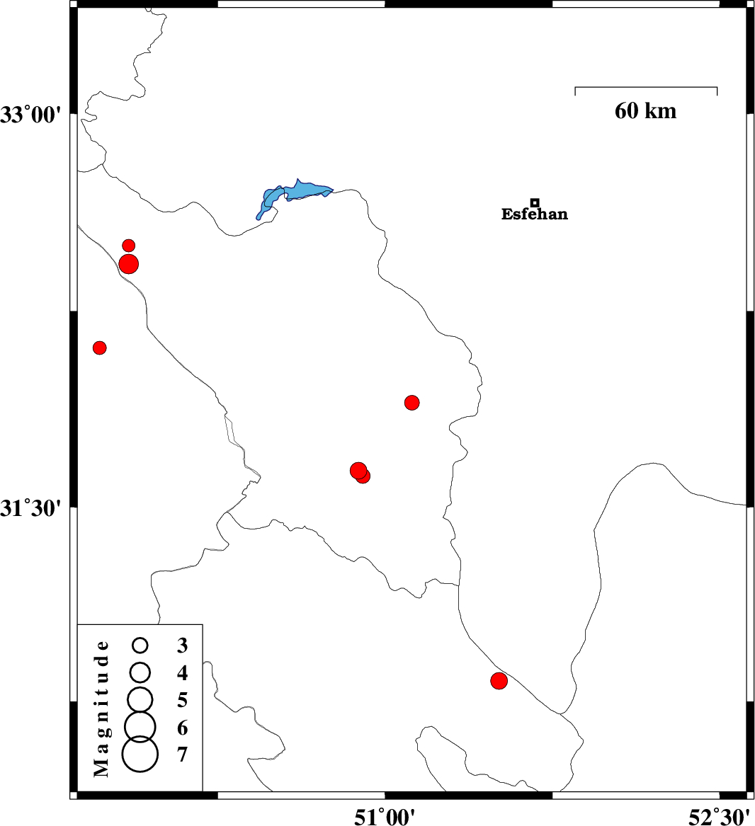 | 2006/11/11 | 12:21:08.3 | 15:51:08.3 | 32.5 | 49.85 | 15 | ML:2.6 | 26 km West of Chelgard, Chaharmahal Bakhtiari Province | ||