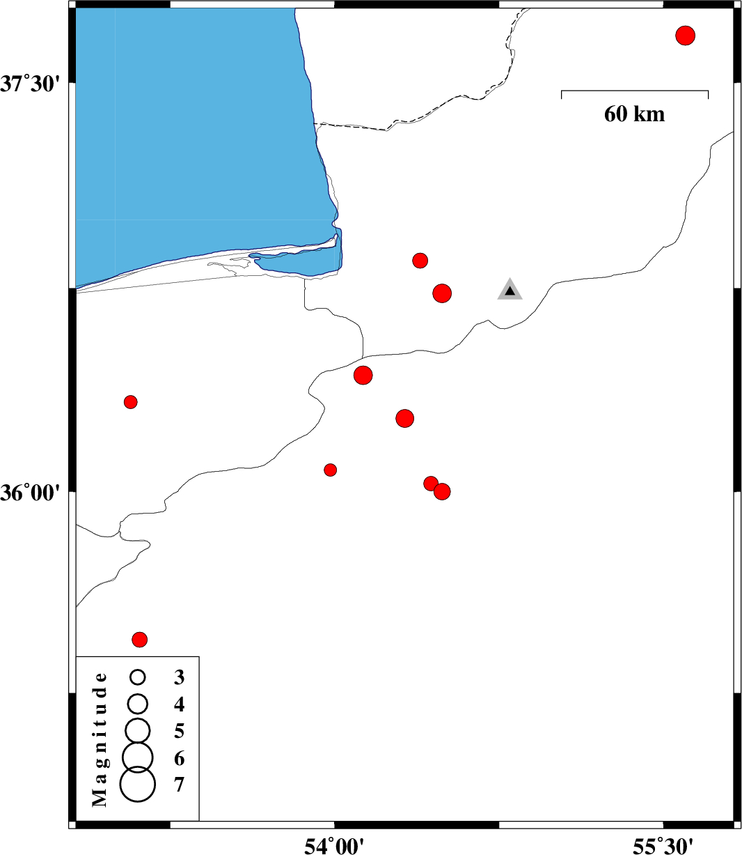 2006/11/02 | 00:53:53.8 | 04:23:53.8 | 36.85 | 54.39 | 14 | ML:3.1 | 4 km Gorgan, Golestan Province |