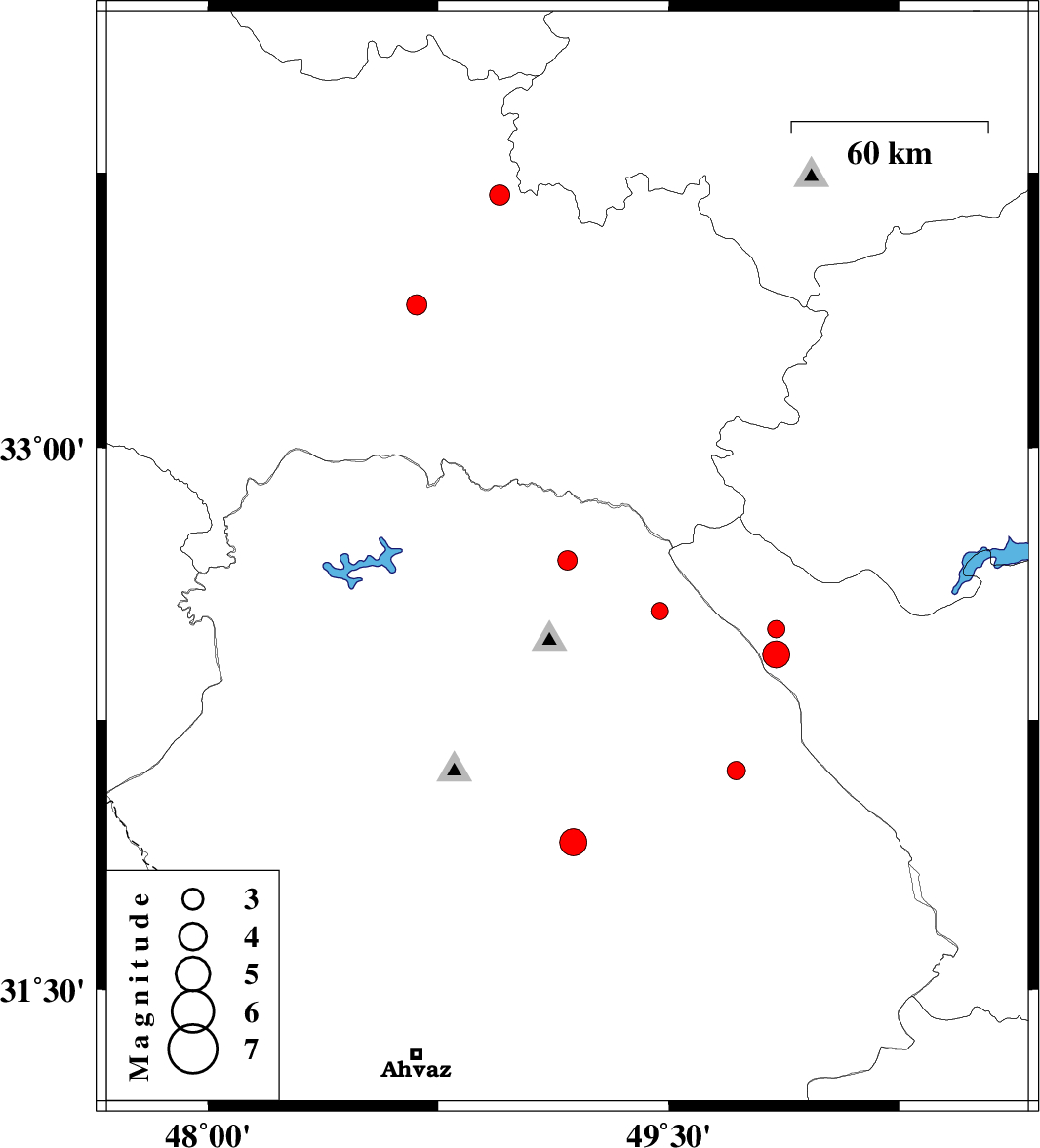 | 2006/11/07 | 08:52:21.4 | 12:22:21.4 | 31.91 | 49.19 | 16 | ML:4 | 11 km West of Masjed Soleyman, Khoozestan Province | ||