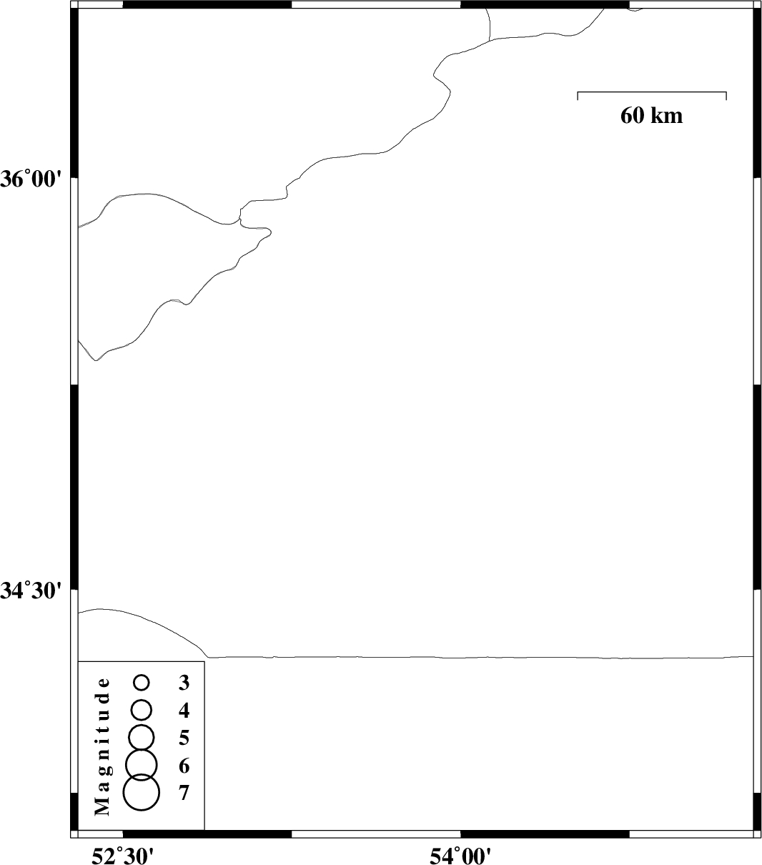 | 2006/12/07 | 11:52:54.6 | 15:22:54.6 | 35.11 | 53.8 | 14 | ML:2.7 | 62 km South-East of Semnan, Semnan Province |
