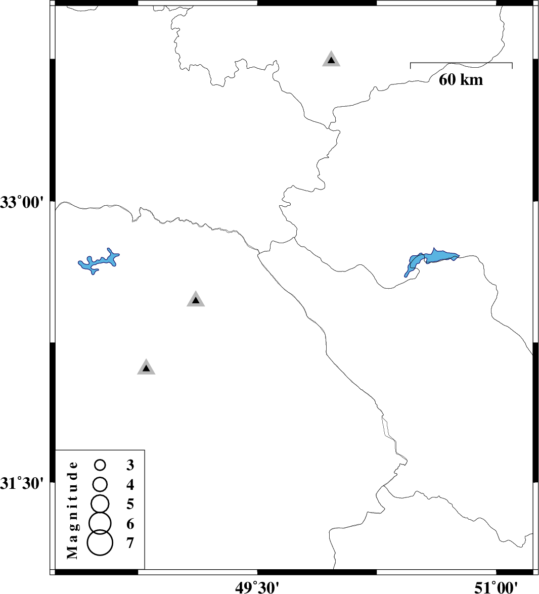 | 2006/12/07 | 17:22:31.5 | 20:52:31.5 | 32.53 | 49.73 | 18 | ML:3 | 37 km West of Chelgard, Chaharmahal Bakhtiari Province |