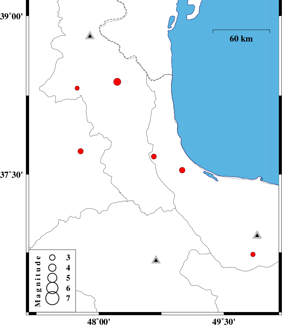 2006/11/10 | 00:42:53.5 | 04:12:53.5 | 37.54 | 49 | 14 | ML:3.1 | 13 km West of Rezvanshahr, Gilan Province |