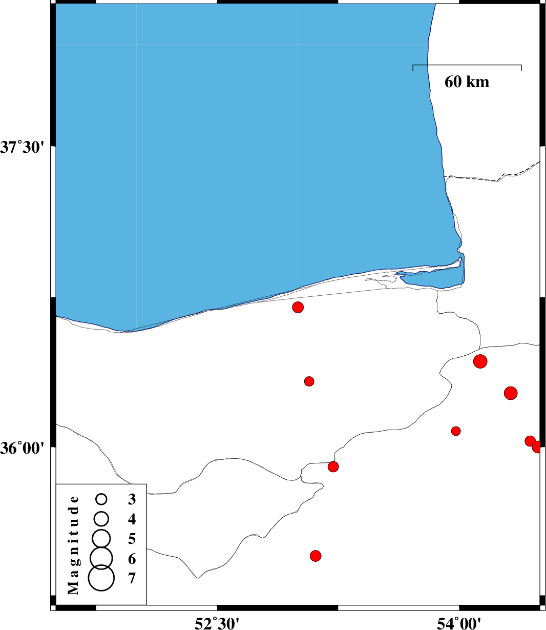 2006/11/19 | 06:55:45.9 | 10:25:45.9 | 36 | 54.49 | 14 | ML:3.4 | 22 km South-East of Damghan, Semnan Province | ||