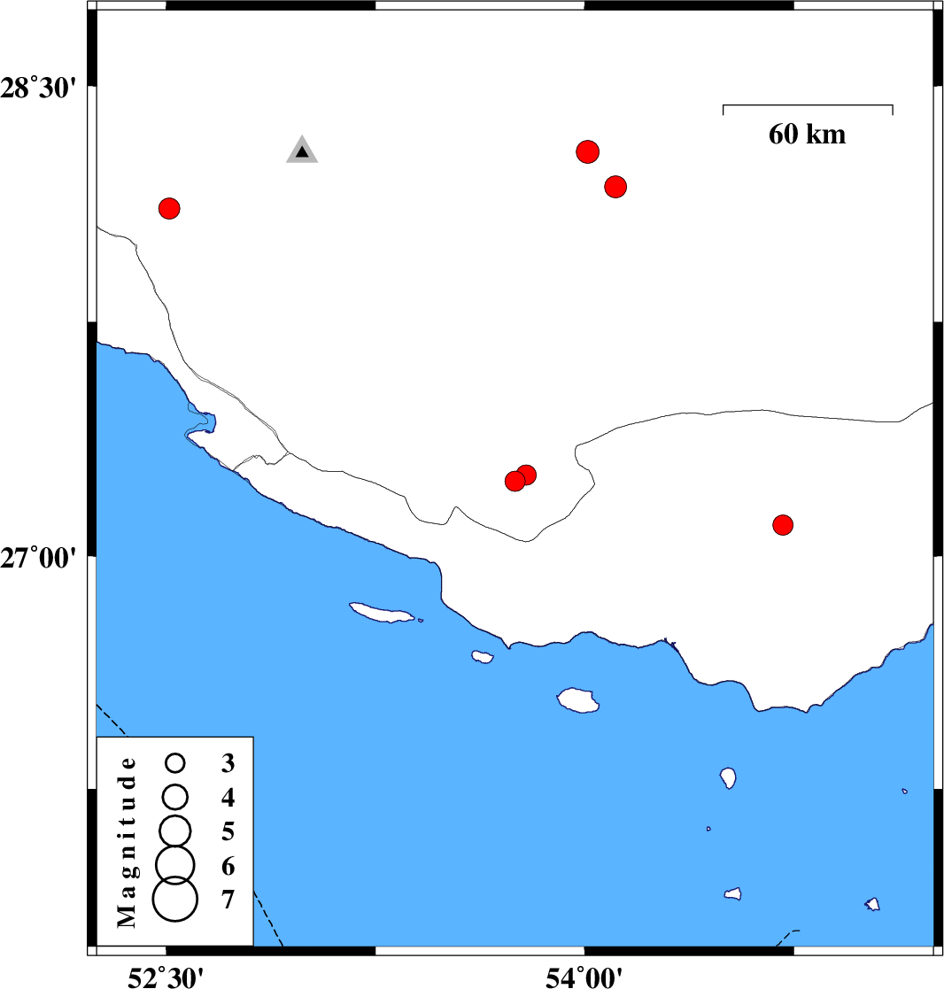 | 2006/11/17 | 15:47:57.0 | 19:17:57.0 | 28.29 | 54.01 | 38 | ML:3.6 | 50 km South-East of Jahrom, Fars Province |
