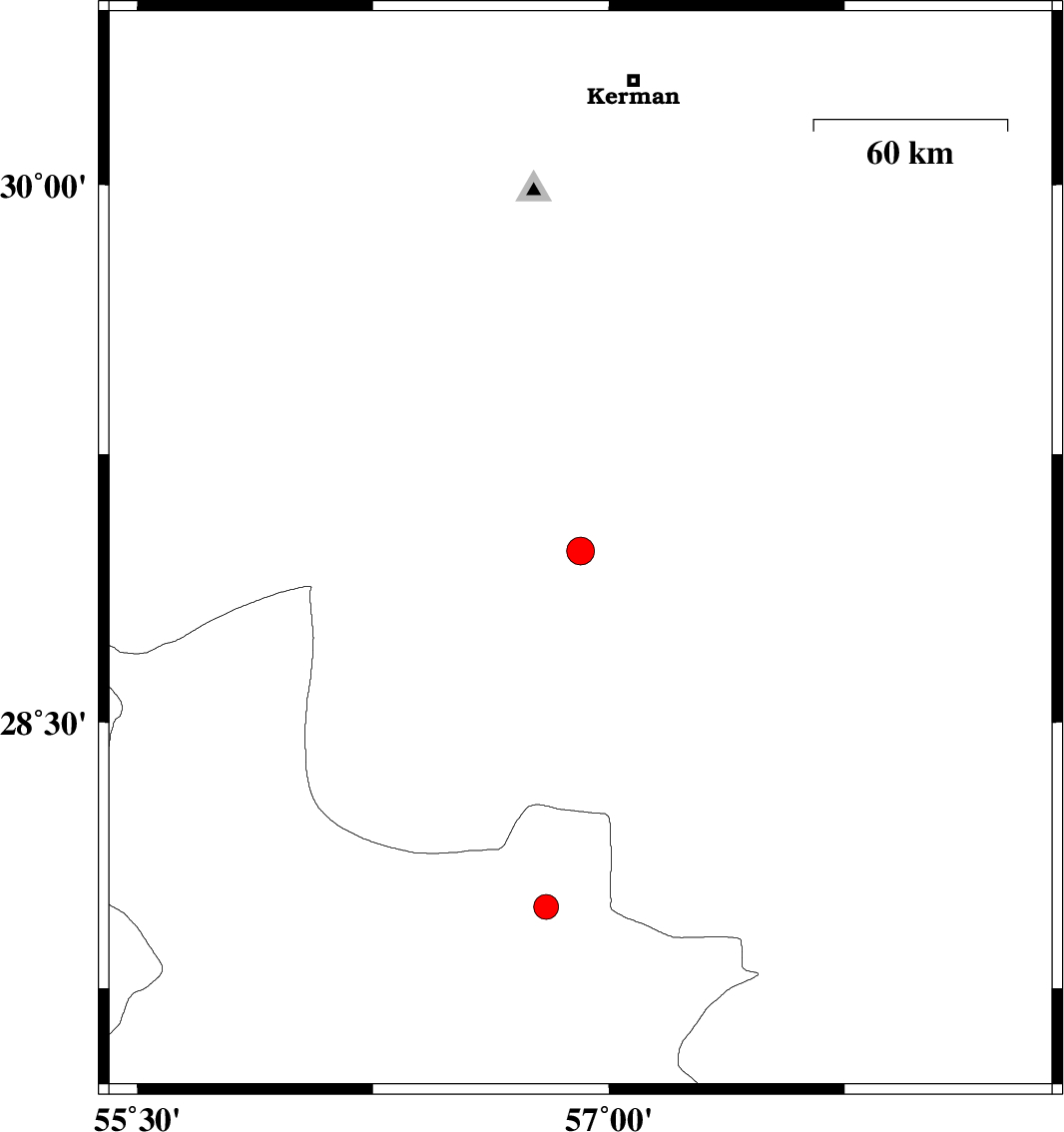 | 2006/12/21 | 15:06:04.5 | 18:36:04.5 | 27.98 | 56.8 | 44 | ML:3.5 | 75 km North-West of Dehbarez, Hormozgan Province |