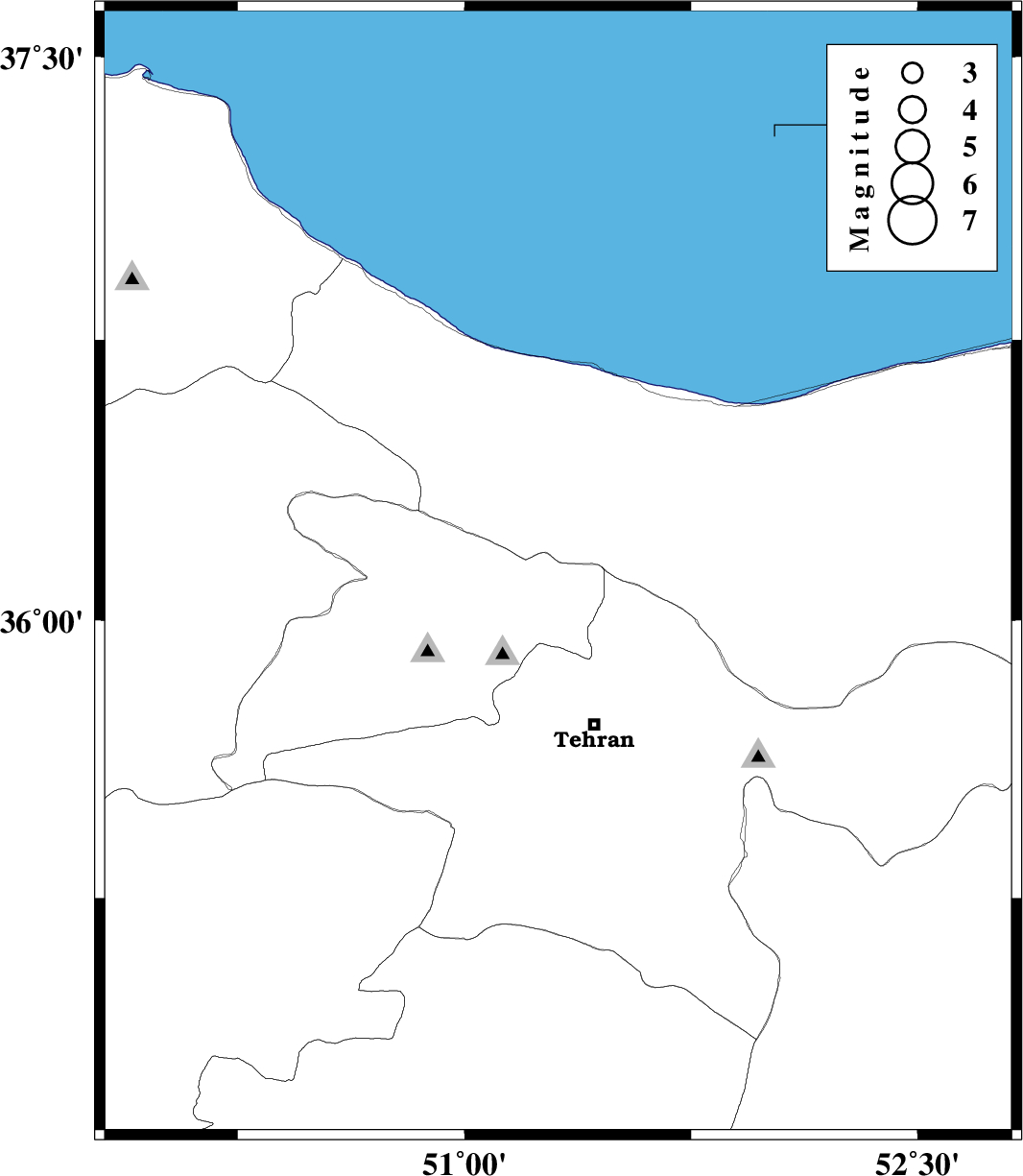 2006/12/20 | 05:25:25.6 | 08:55:25.6 | 35.76 | 51.93 | 18 | ML:2.5 | 14 km West of Damavand, Tehran Province | ||