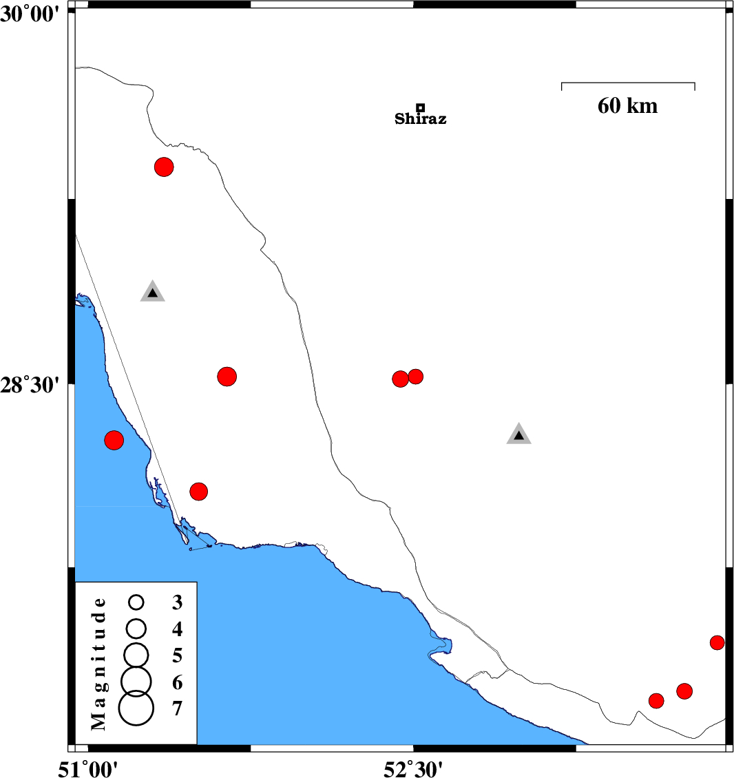 | 2006/12/10 | 15:54:02.8 | 19:24:02.8 | 28.53 | 51.64 | 43 | ML:3.9 | 29 km South-East of Khormog, Bushehr Province |