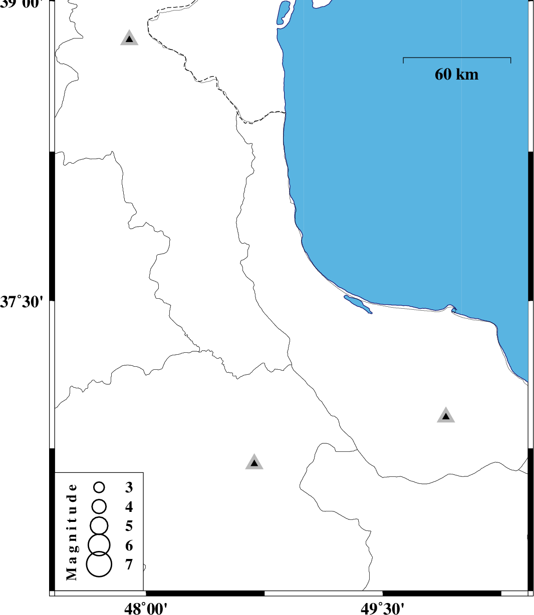 | 2007/02/25 | 23:01:27.4 | 02:31:27.4 | 37.52 | 48.92 | 14 | ML:2.7 | 20 km West of Rezvanshahr, Gilan Province |