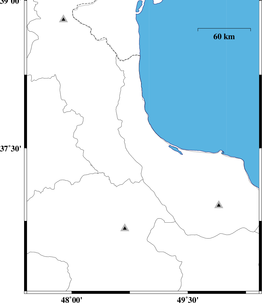 | 2007/02/25 | 23:01:27.4 | 02:31:27.4 | 37.52 | 48.92 | 14 | ML:2.7 | 20 km West of Rezvanshahr, Gilan Province |