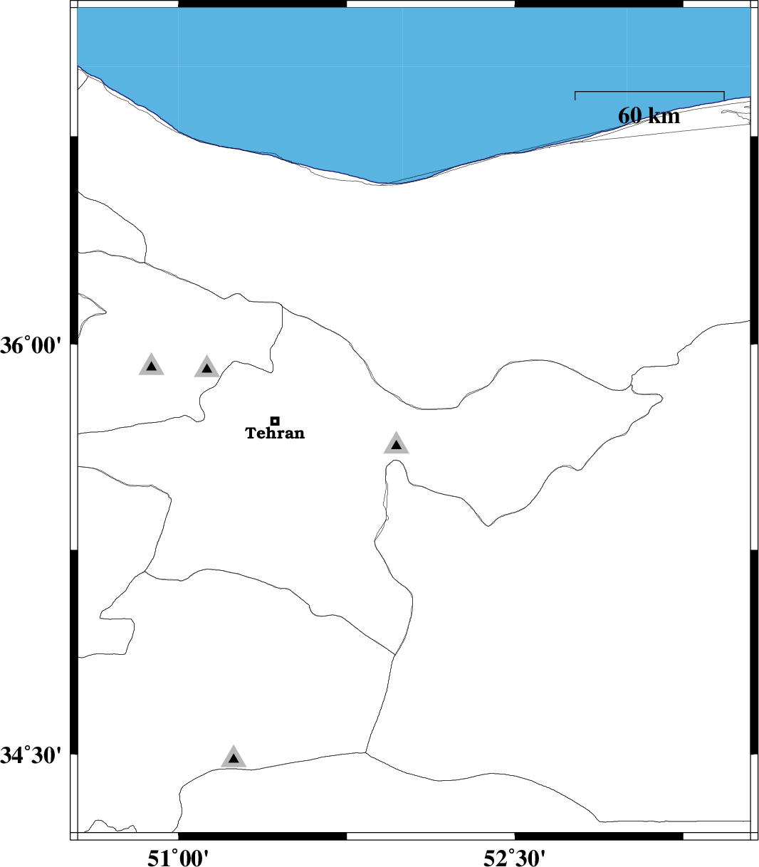 | 2007/02/26 | 19:43:06.0 | 23:13:06.0 | 35.71 | 52.05 | 14 | ML:3.4 | 2 km Damavand, Tehran Province | ||