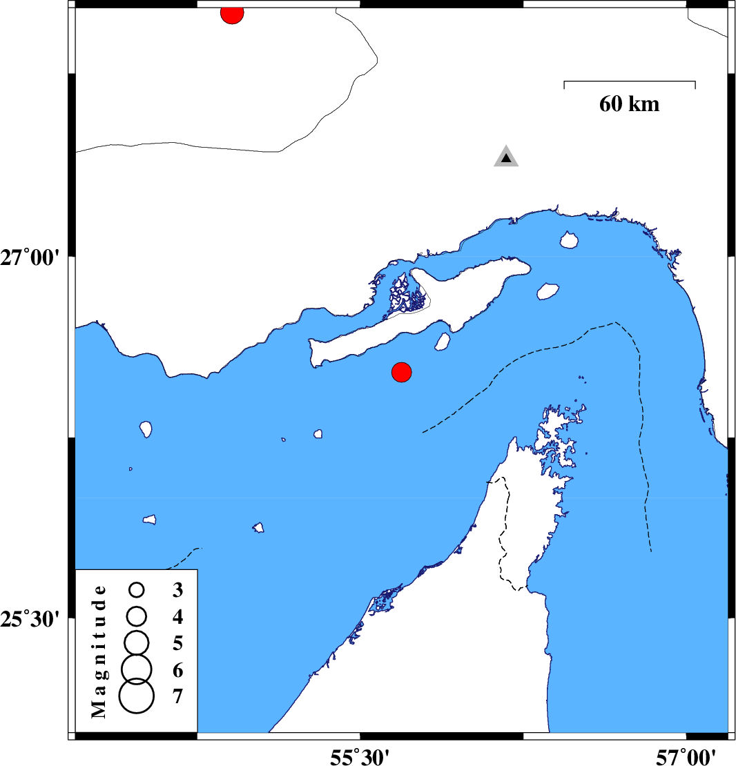 | 2007/03/10 | 18:15:31.0 | 21:45:31.0 | 26.52 | 55.69 | 15 | ML:4.1 | Persian Gulf, 75 km South-West of Qeshm | ||