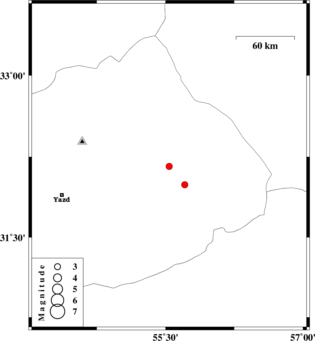 2007/03/13 05:14:14.8 08:44:14.8 31.9955.7114 ML:3.2 52 km North-East of Bafq, Yazd Province