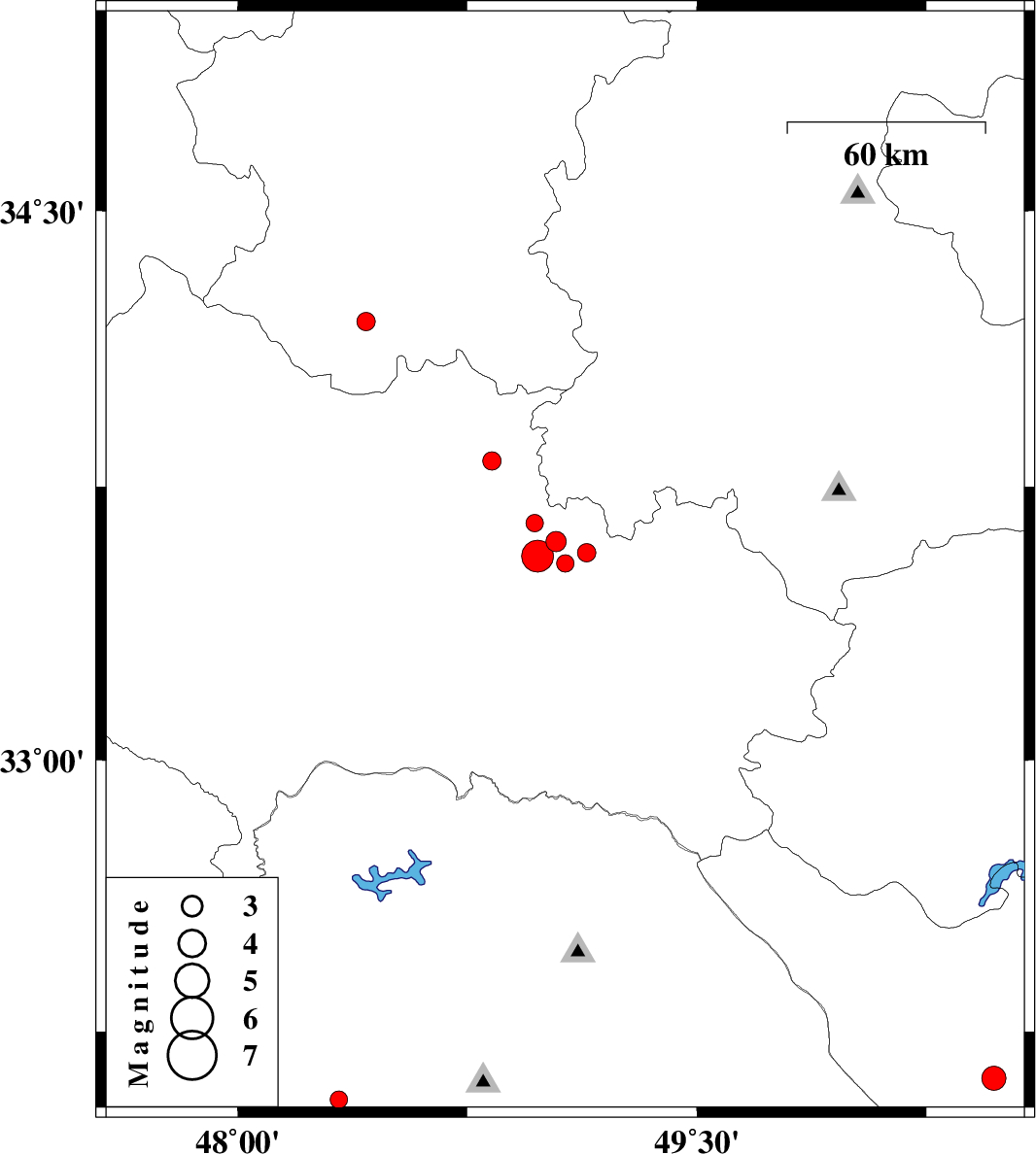 | 2007/03/14 | 05:53:13.2 | 09:23:13.2 | 33.6 | 49.04 | 15 | ML:2.9 | 13 km North of Dorud, Lorestan Province | ||