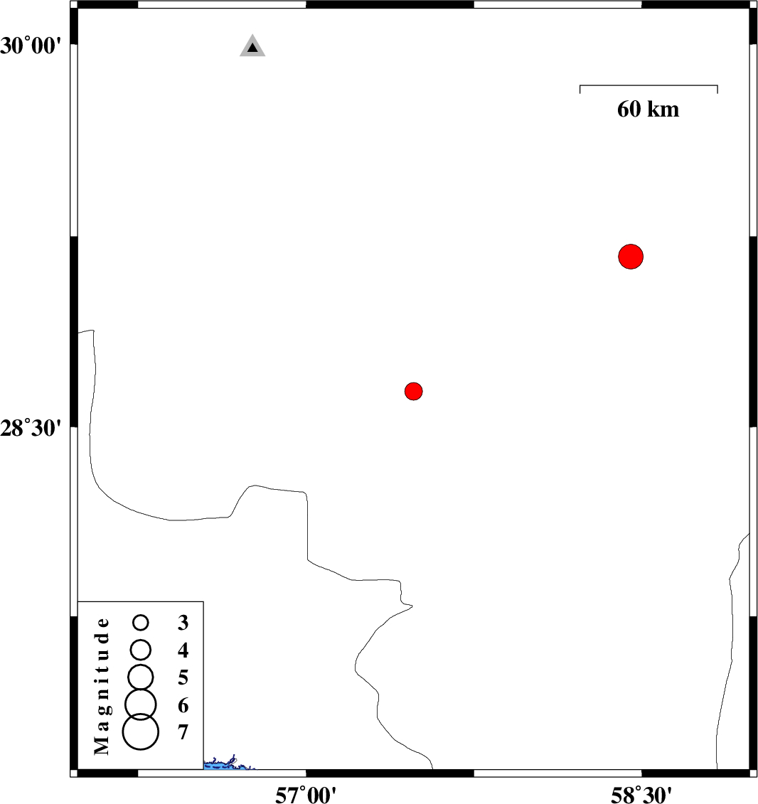 | 2007/03/26 | 11:00:45.3 | 14:30:45.3 | 28.64 | 57.48 | 14 | ML:3.5 | 25 km West of Jiroft, Kerman Province | ||