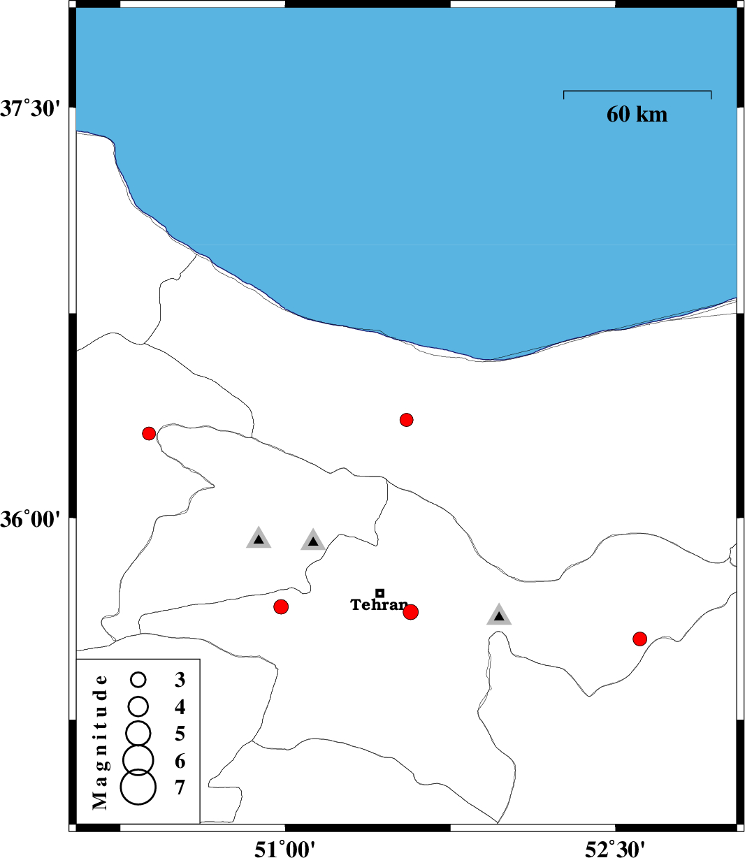 | 2007/03/02 | 12:10:19.2 | 15:40:19.2 | 35.65 | 51.57 | 14 | ML:3.1 | 12 km East of Rey, Tehran Province |