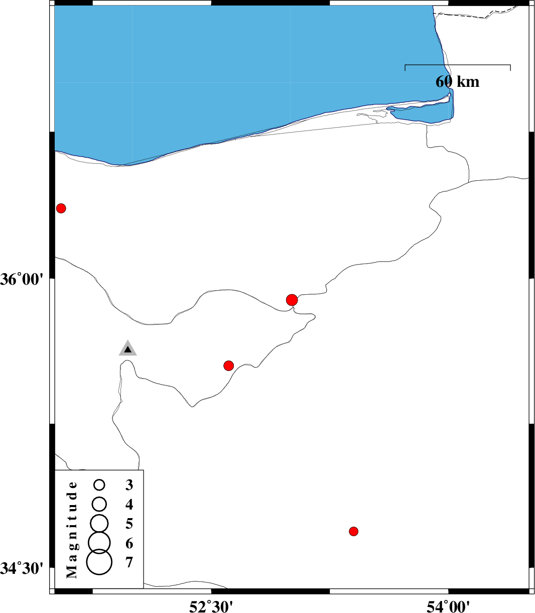 | 2007/03/18 | 00:13:15.7 | 03:43:15.7 | 35.55 | 52.61 | 14 | ML:2.8 | 25 km South-West of Firuzkuh, Tehran Province |