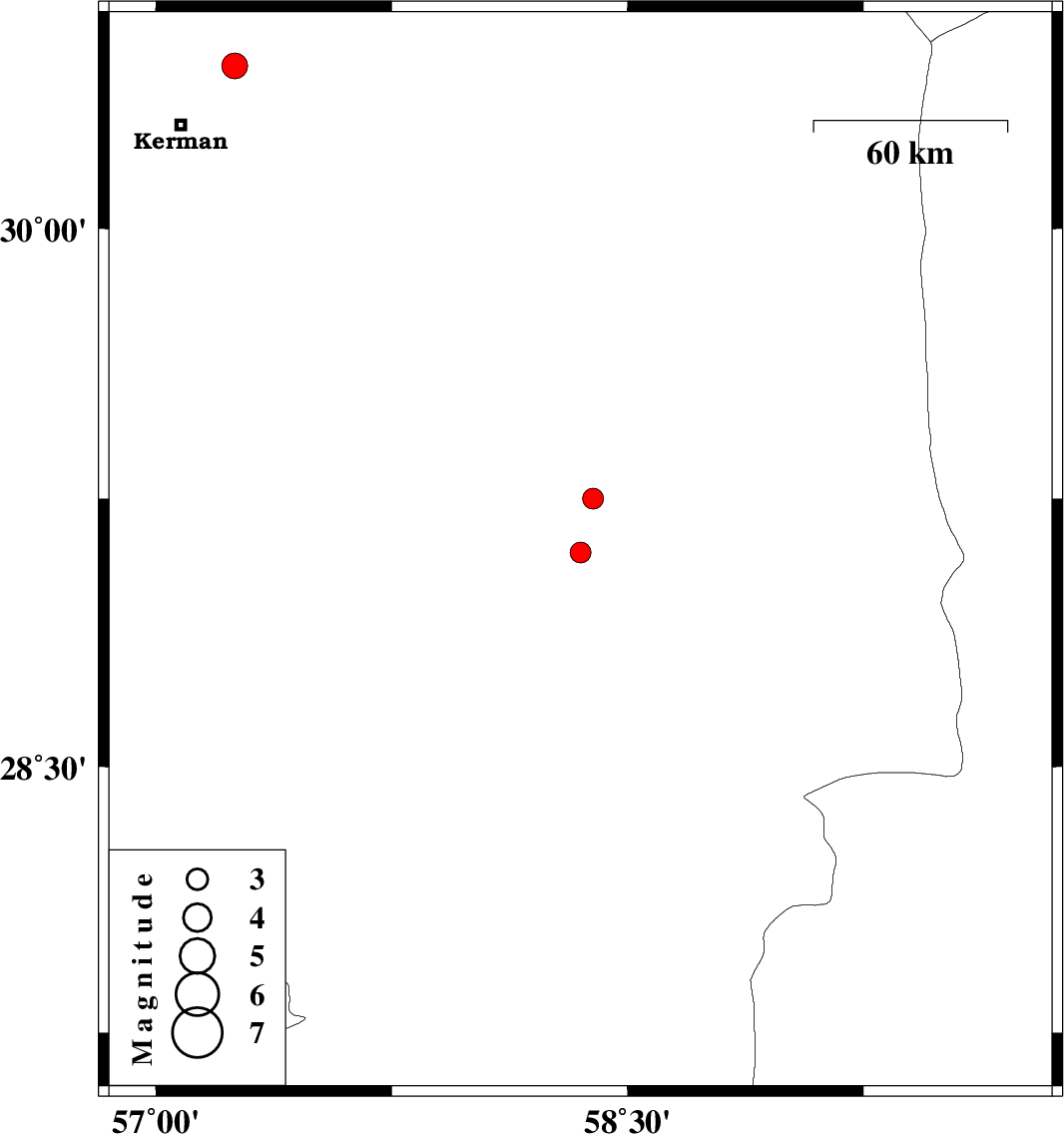 2007/06/03 12:10:00.9 15:40:00.9 30.4557.2515 ML:3.6 24 km North-East of Kerman, Kerman Province