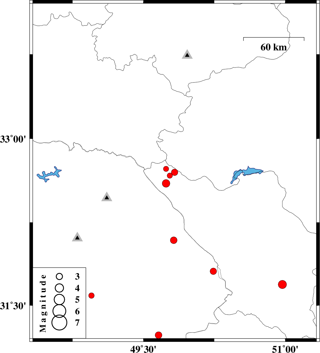| 2007/06/03 | 06:45:53.4 | 10:15:53.4 | 32.6 | 49.74 | 14 | ML:3.6 | 38 km North-West of Chelgard, Chaharmahal Bakhtiari Province | ||