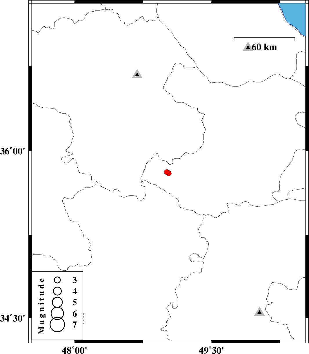 2007/05/07 03:39:28.5 07:09:28.5 35.849.0317 ML:2.7 42 km South-West of Abhar, Zanjan Province