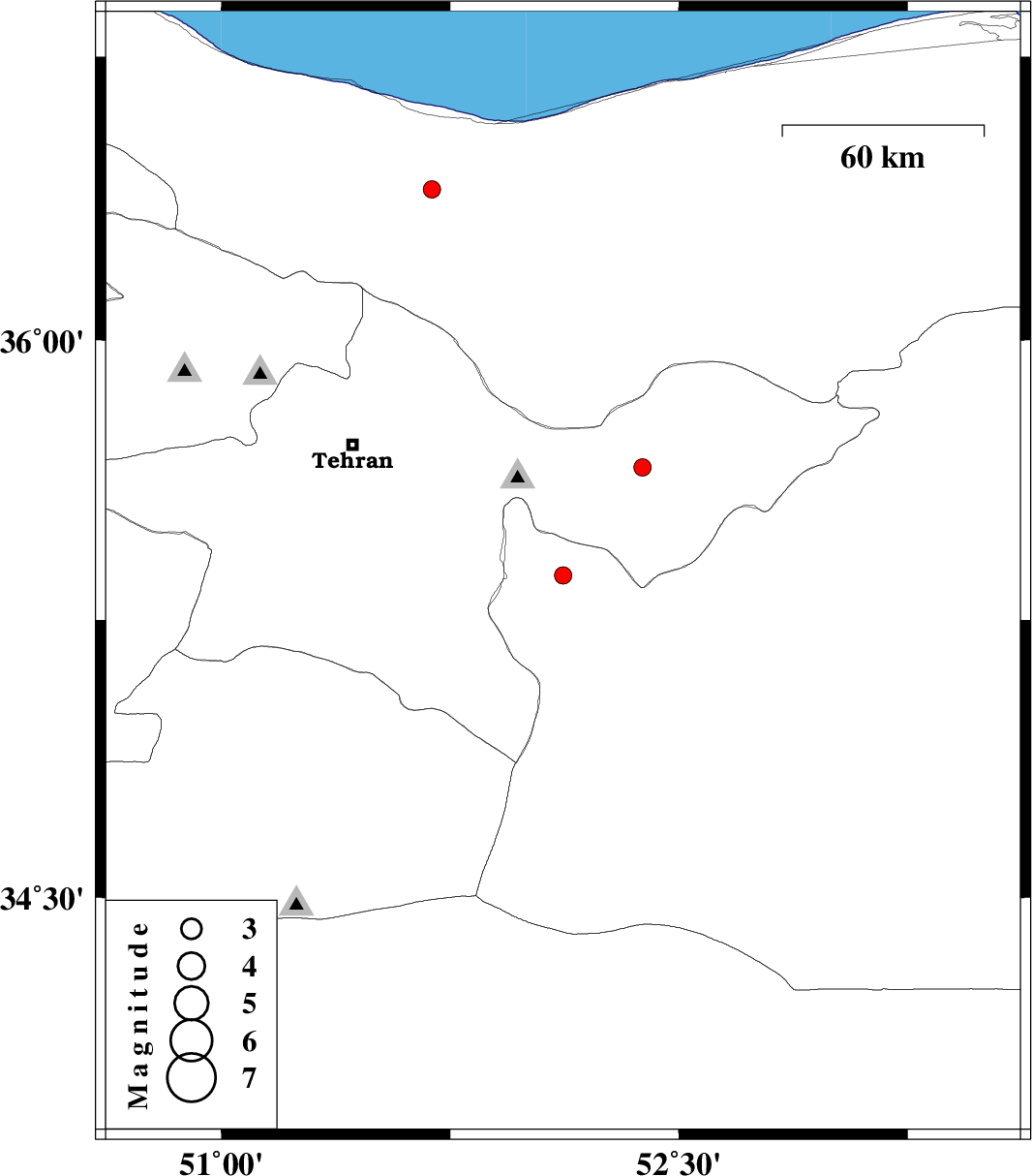 | 2007/05/06 | 15:55:36.6 | 19:25:36.6 | 35.66 | 52.38 | 8 | ML:2.6 | 28 km East of Damavand, Tehran Province | ||