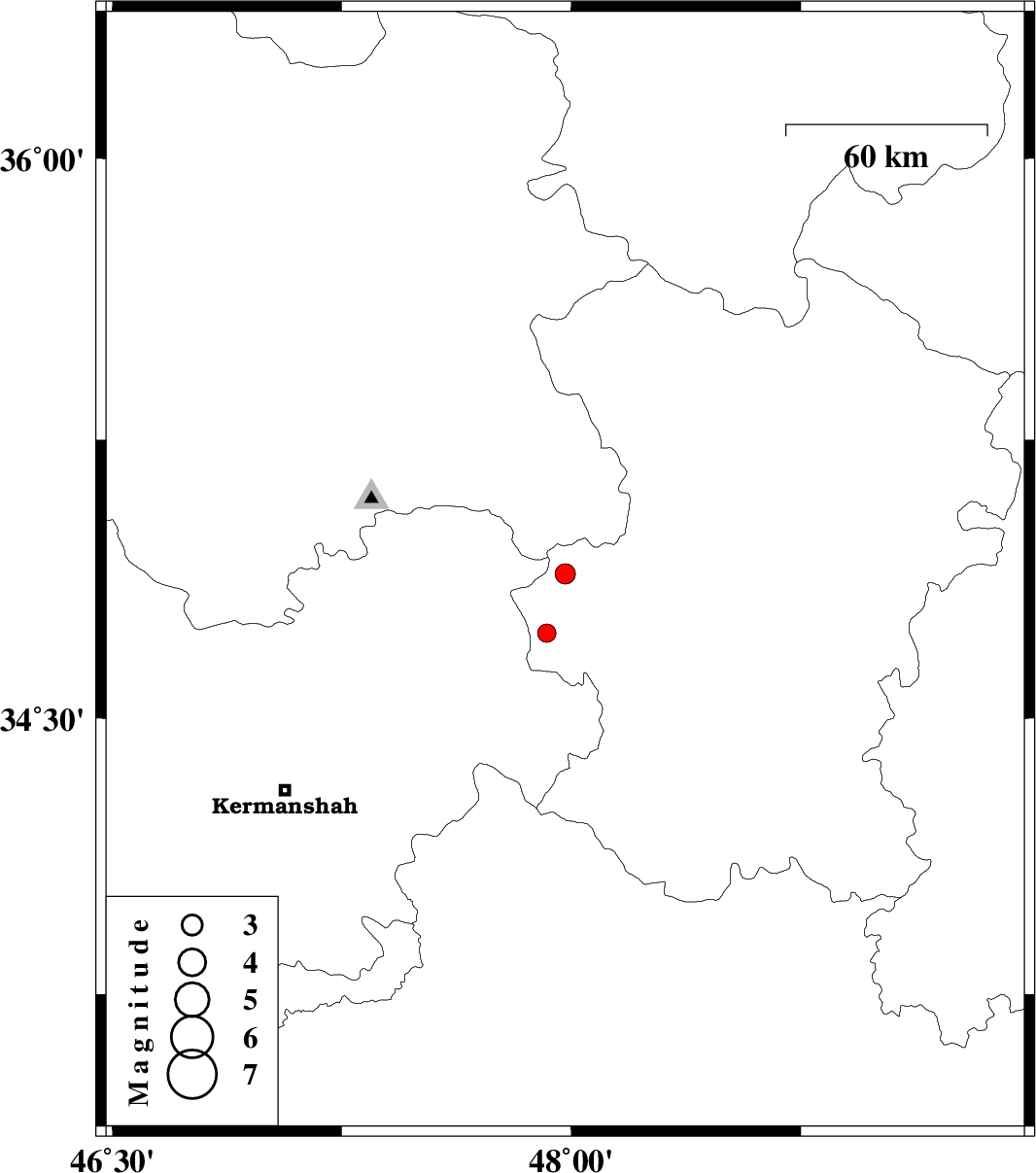 | 2007/06/08 | 03:50:00.6 | 07:20:00.6 | 34.73 | 47.92 | 14 | ML:2.7 | 18 km West of Asad Abad, Hamedan Province |