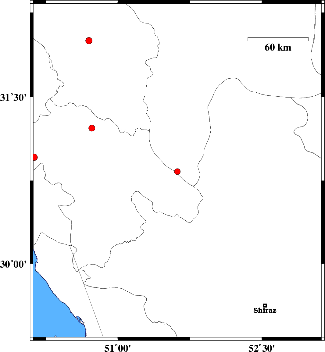 | 2007/03/26 | 06:55:34.4 | 10:25:34.4 | 32 | 50.7 | 14 | ML:3.1 | 4 km Ardel, Chaharmahal Bakhtiari Province | ||
