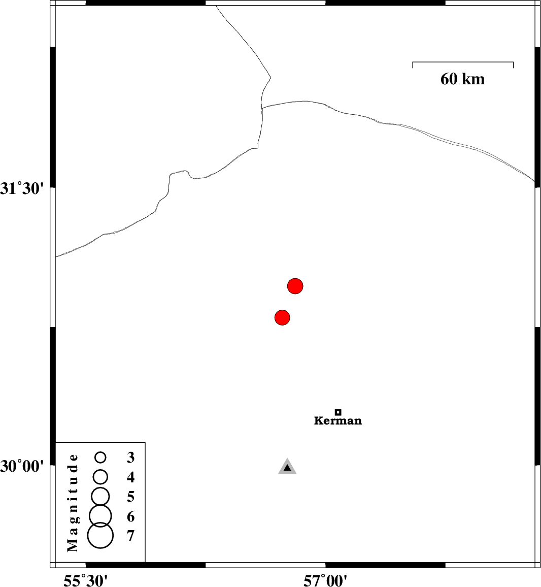 | 2007/04/01 | 19:51:25.4 | 23:21:25.4 | 30.8 | 56.73 | 18 | ML:4.2 | 15 km East of Zarand, Kerman Province |
