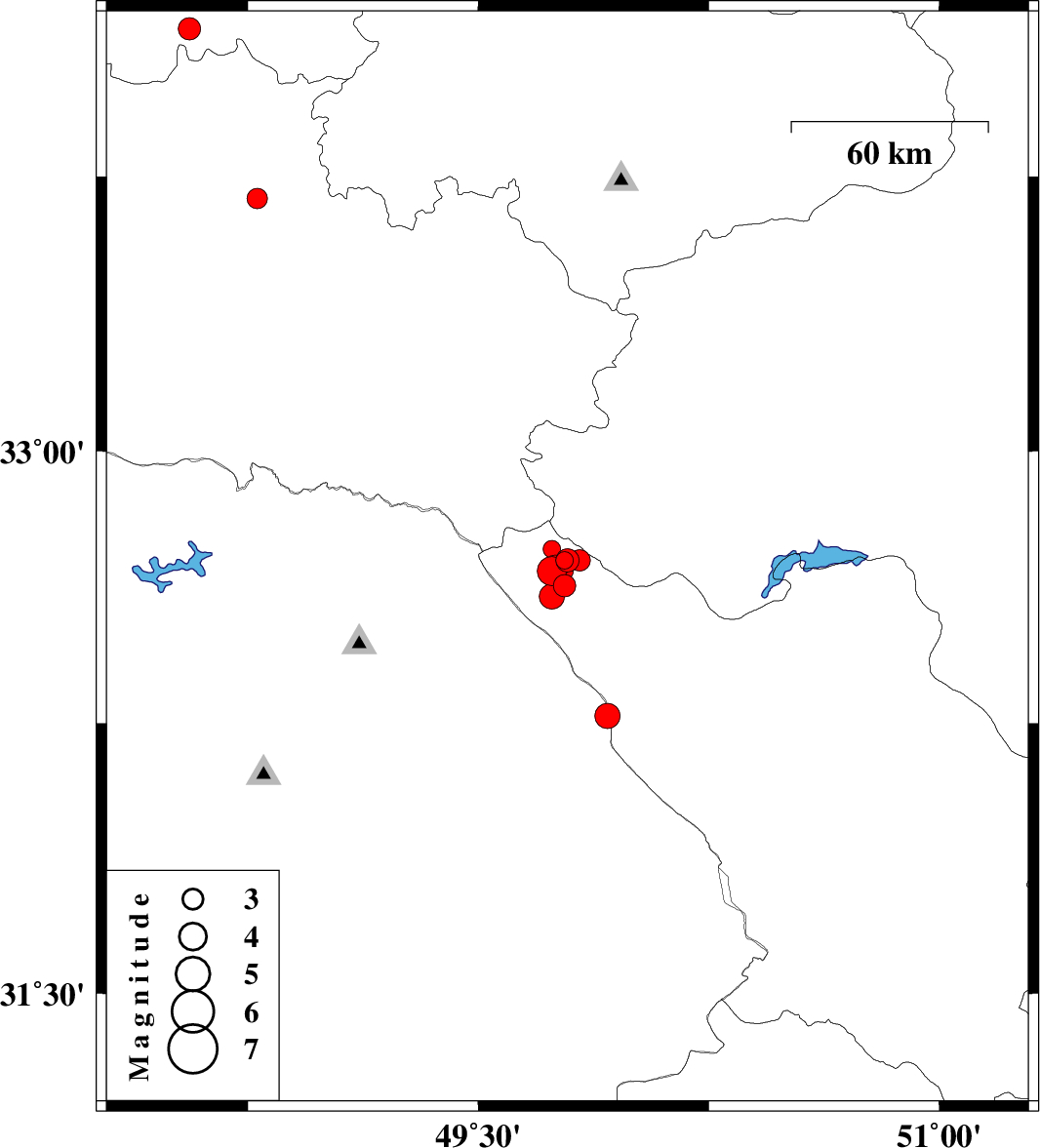 2007/06/08 17:12:41.4 20:42:41.4 32.2749.9214 ML:3.7 28 km South-West of Chelgard, Chaharmahal Bakhtiari Province