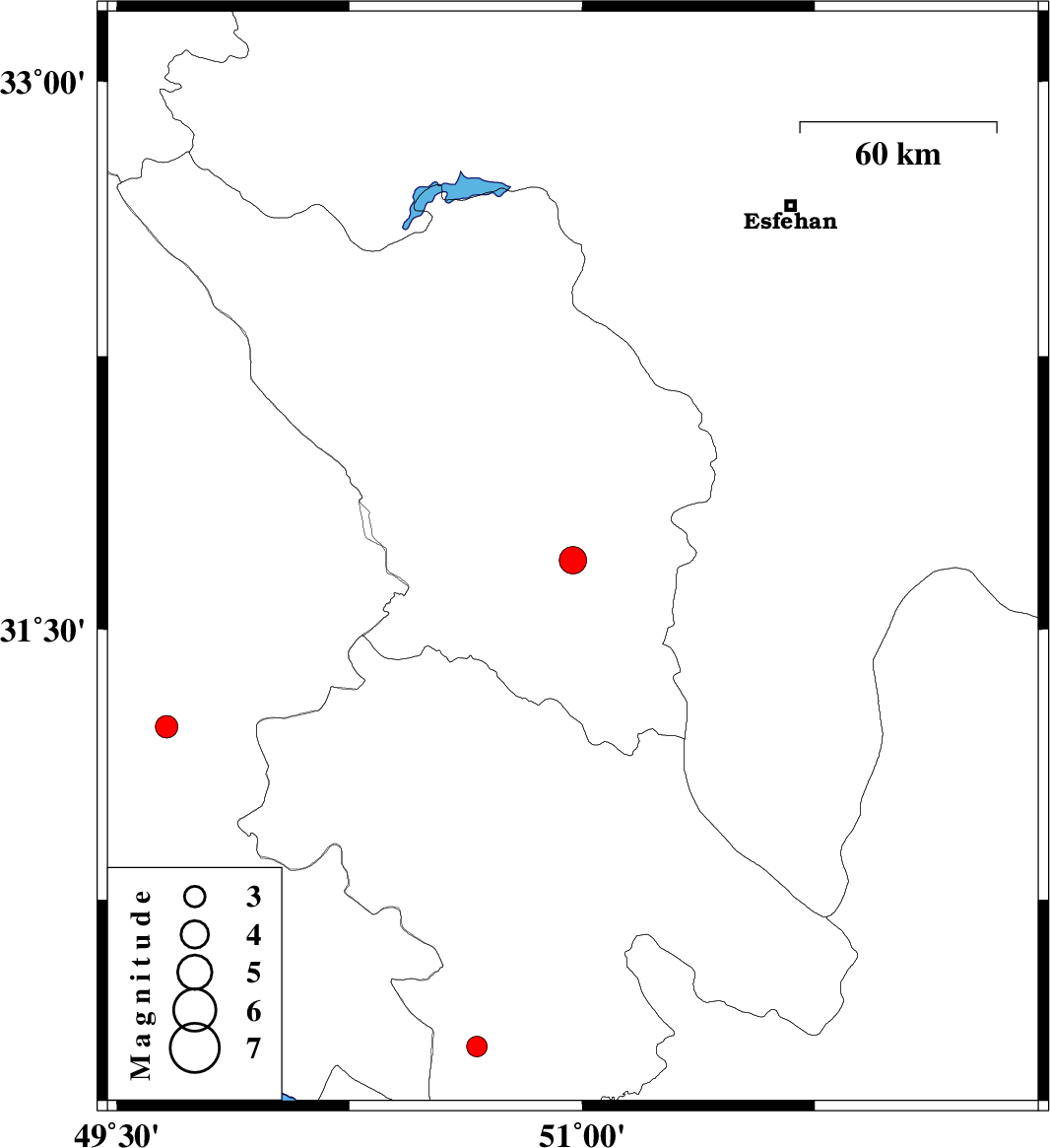 | 2007/05/17 | 09:16:25.7 | 12:46:25.7 | 31.69 | 50.97 | 14 | ML:4 | 25 km North-East of Lordegan, Chaharmahal Bakhtiari Province | ||