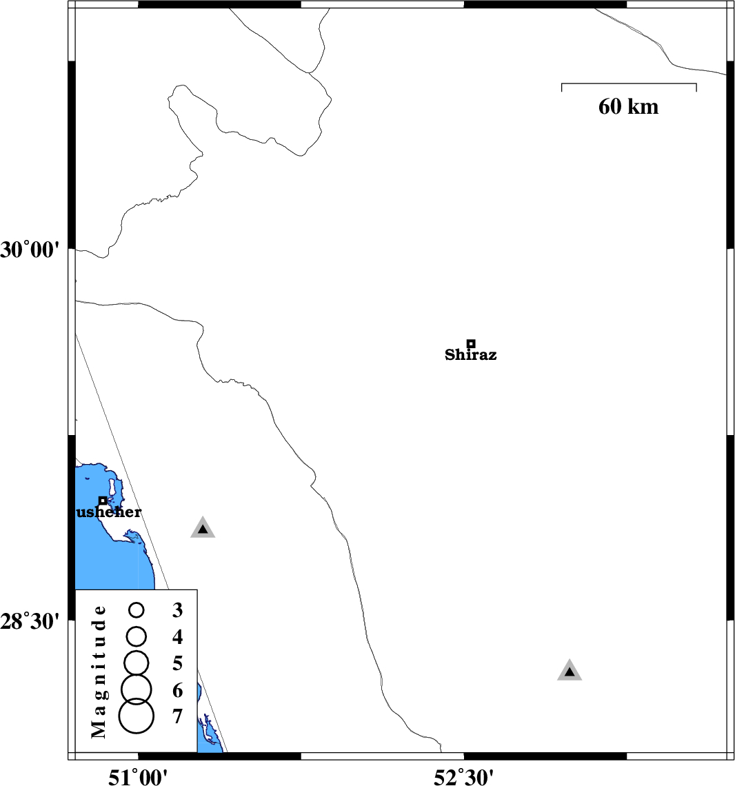 | 2007/04/17 | 12:20:39.4 | 15:50:39.4 | 29.46 | 52.21 | 18 | ML:3 | 35 km South-West of Shiraz, Fars Province |