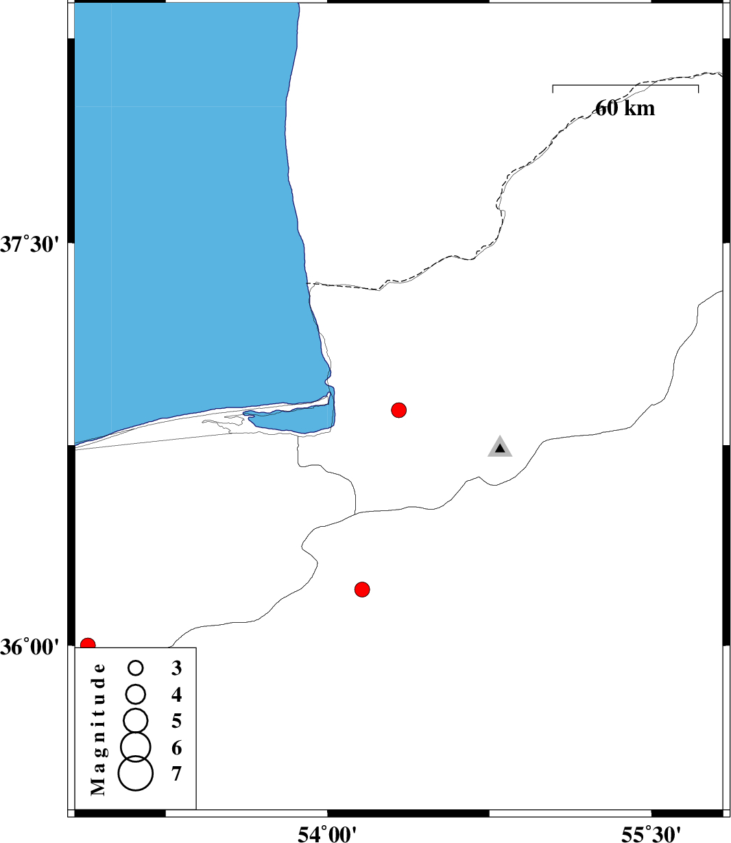 | 2007/05/18 | 09:29:59.8 | 12:59:59.8 | 36.88 | 54.33 | 14 | ML:3.1 | 10 km West of Gorgan, Golestan Province | ||