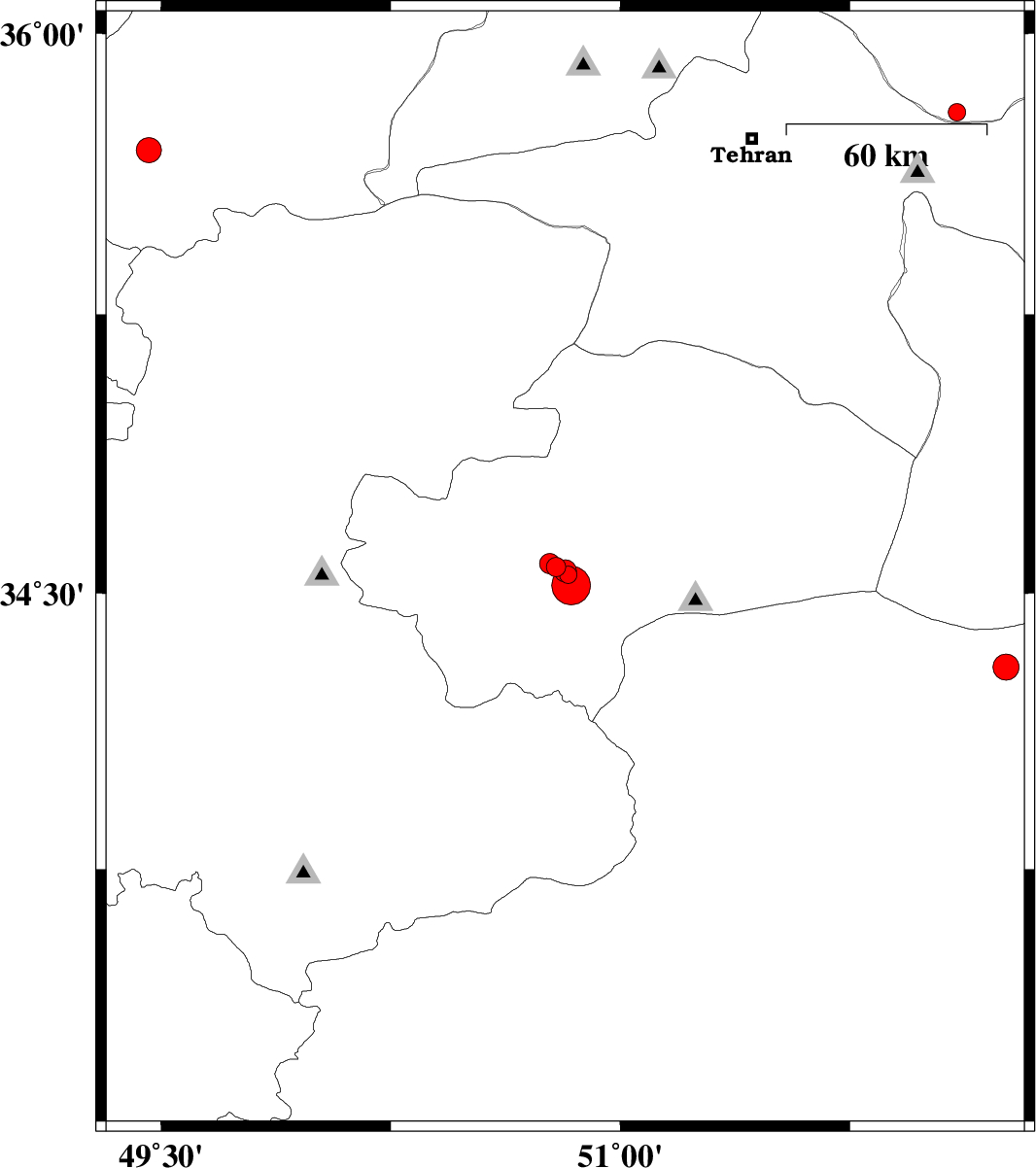 | 2007/06/18 | 14:29:49.4 | 17:59:49.4 | 34.52 | 50.84 | 17 | ML:5.6 | 15 km South of Qom, Qom Province | ||