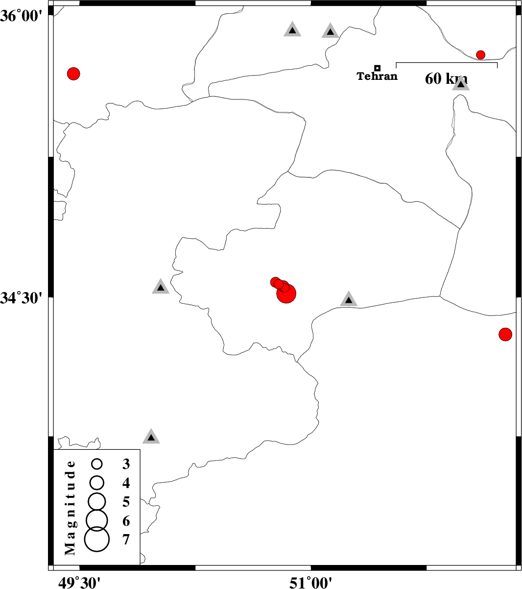 | 2007/05/30 | 09:44:10.4 | 13:14:10.4 | 35.79 | 52.1 | 12 | ML:2.6 | 8 km Damavand, Tehran Province | ||