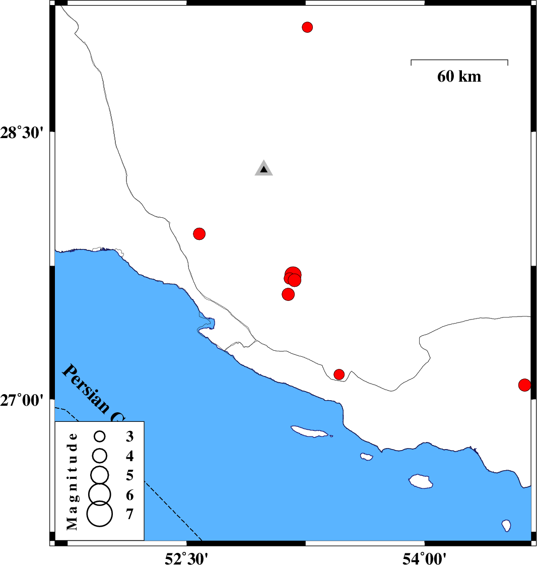 2007/04/26 22:18:10.6 01:48:10.6 27.9352.5812 ML:3.4 28 km East of Jam, Bushehr Province