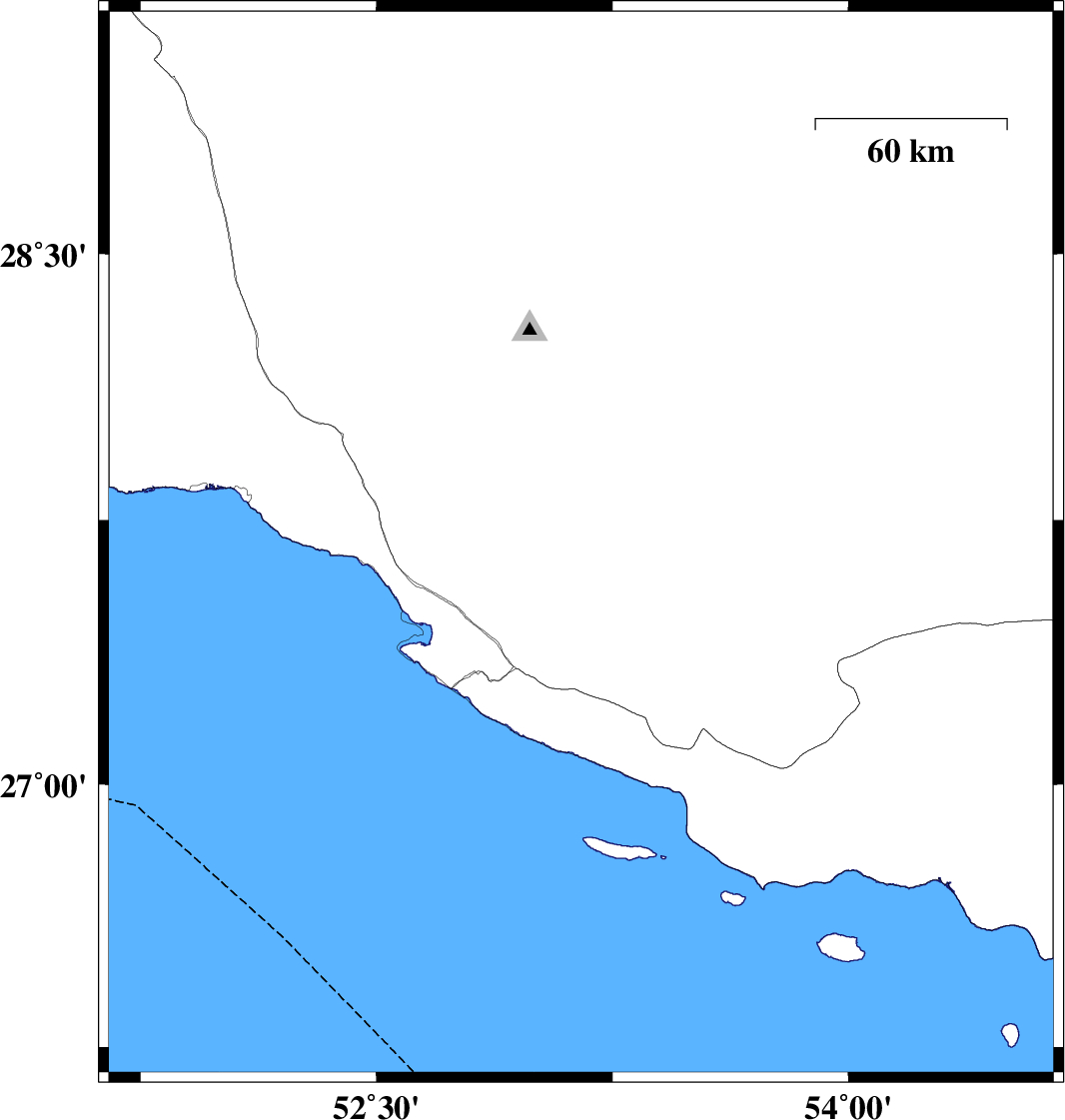 2007/05/18 23:03:34.1 02:33:34.1 27.753.1731 ML:4.7 32 km North-East of Mehr, Fars Province