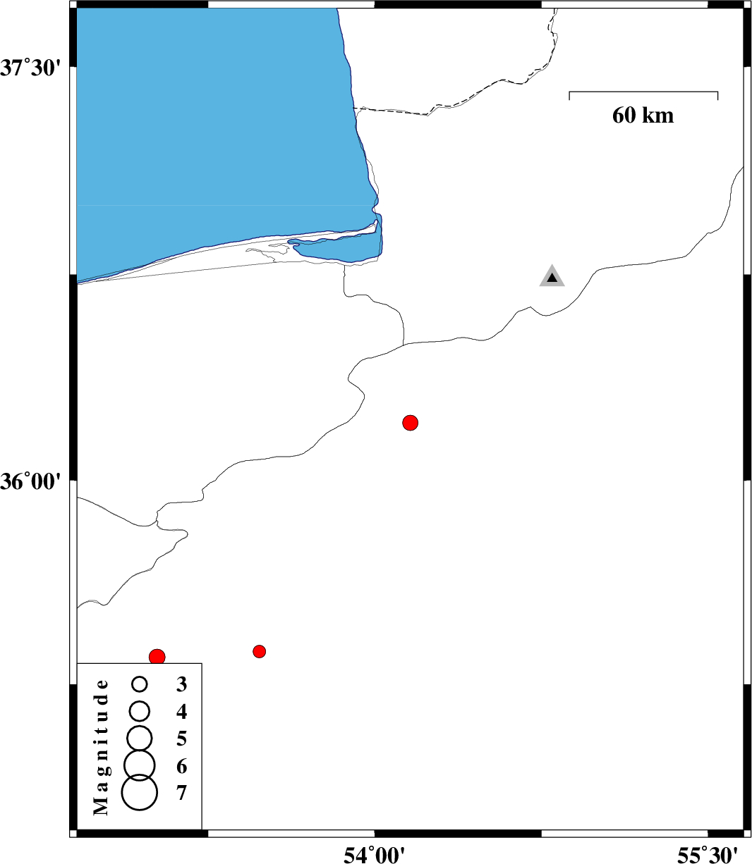 | 2007/04/19 | 23:01:02.9 | 02:31:02.9 | 35.37 | 53.48 | 14 | ML:2.6 | 23 km South of Semnan, Semnan Province | ||