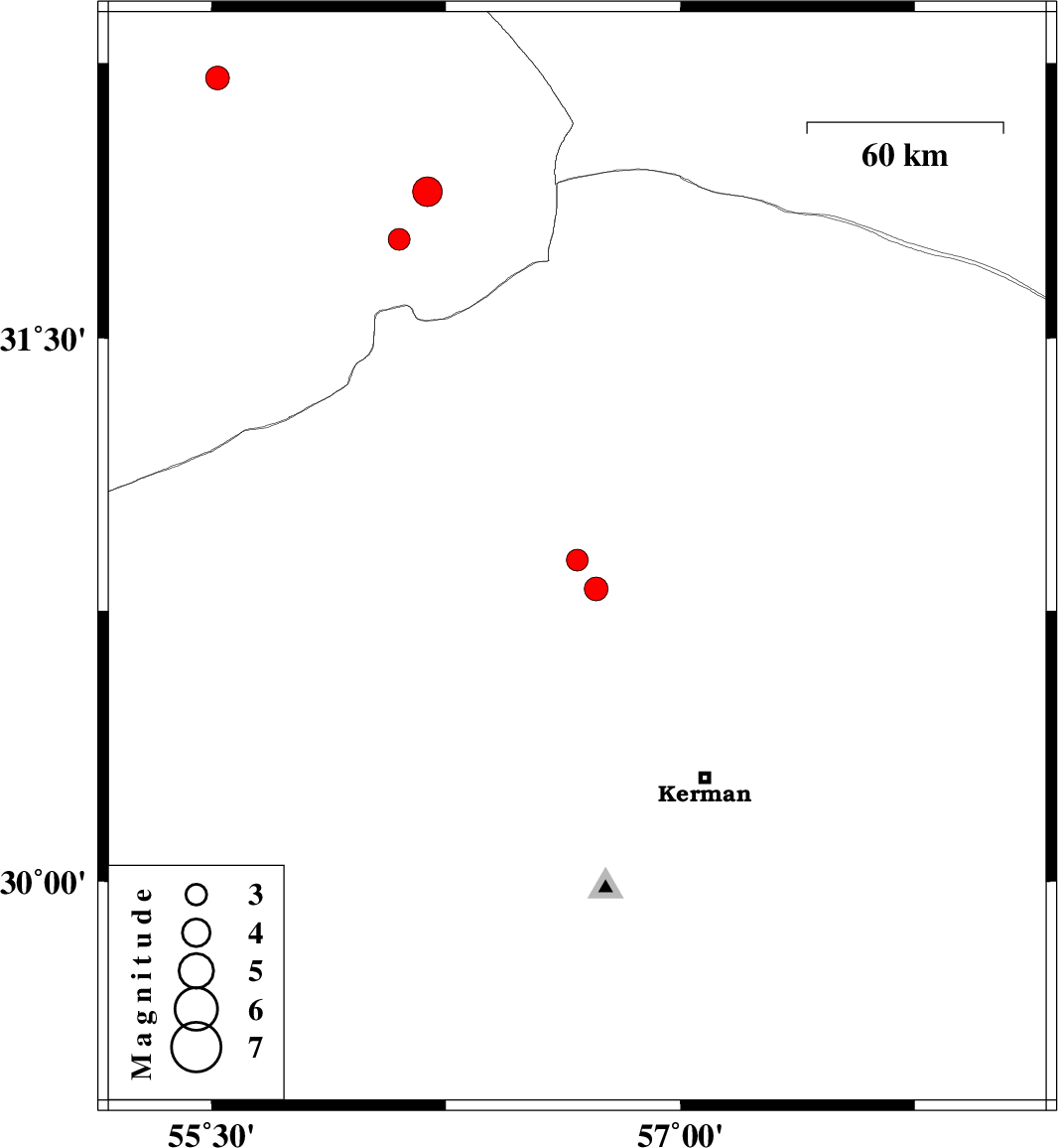 | 2007/04/26 | 03:45:20.4 | 07:15:20.4 | 30.81 | 56.73 | 7 | ML:3.4 | 15 km East of Zarand, Kerman Province |