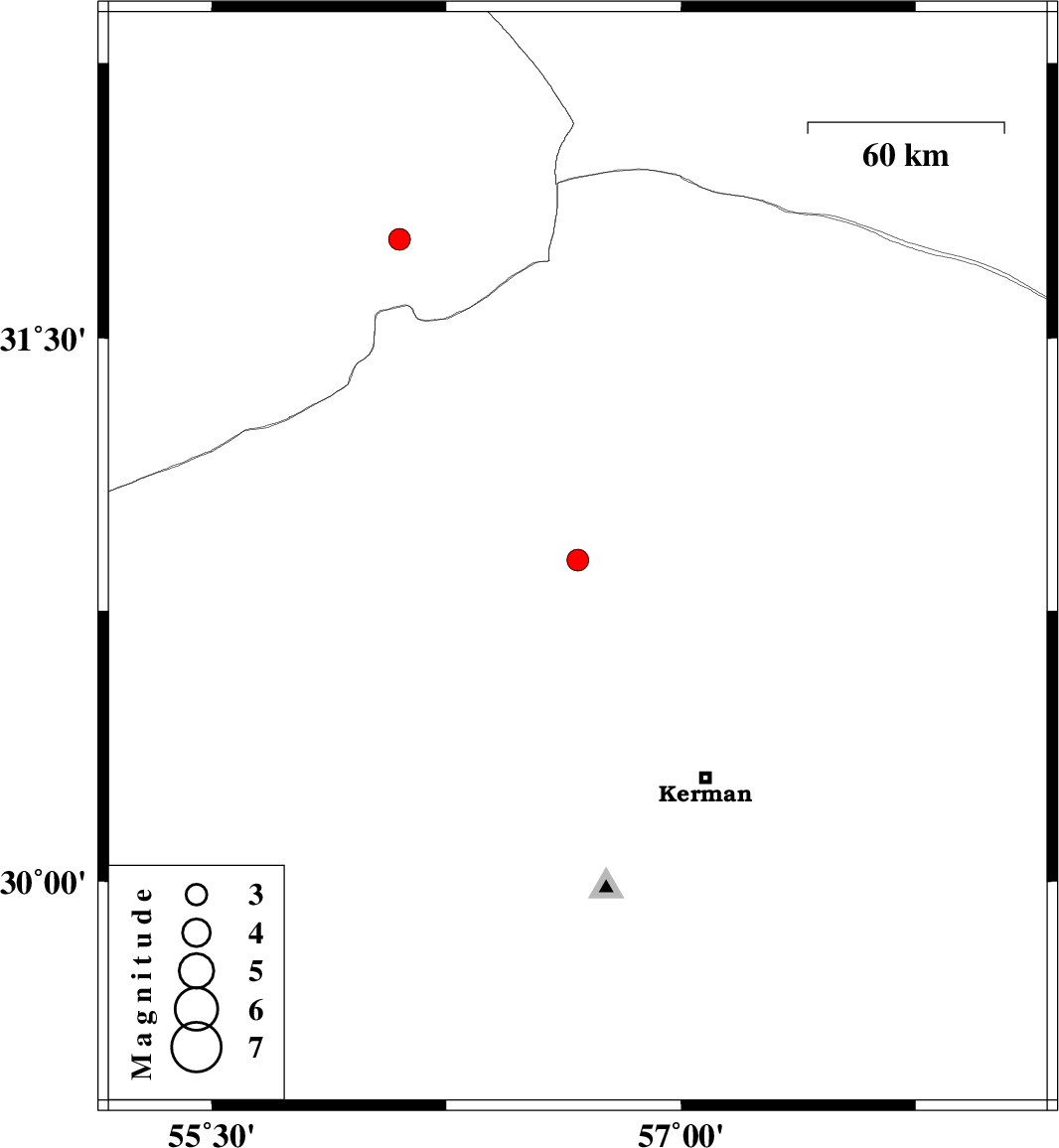 | 2007/05/22 | 21:17:50.5 | 00:47:50.5 | 30.89 | 56.67 | 16 | ML:3.1 | 13 km East of Zarand, Kerman Province | ||
