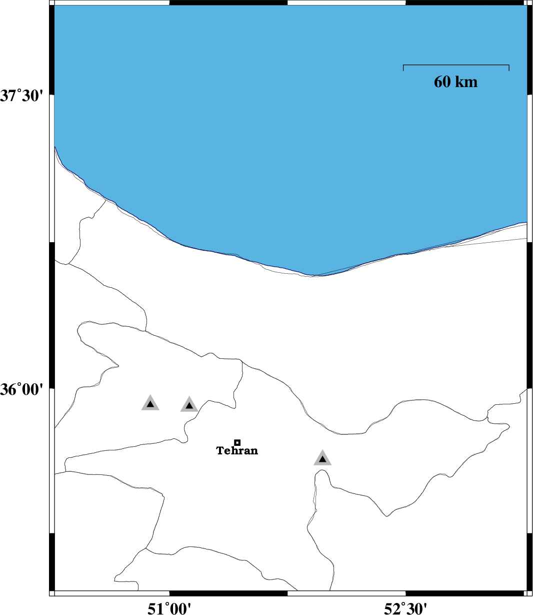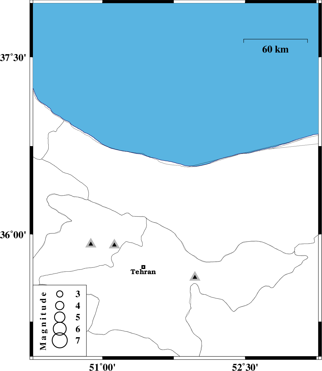 | 2007/05/23 | 01:39:37.4 | 05:09:37.4 | 36.45 | 51.77 | 14 | ML:2.6 | 27 km South-West of Nur, Mazandaran Province |